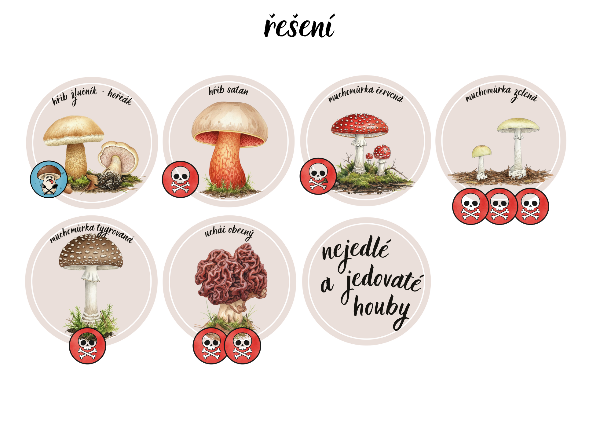 - 6x nejedlé či jedovaté houby - demonstrační karty + přehled všech hub