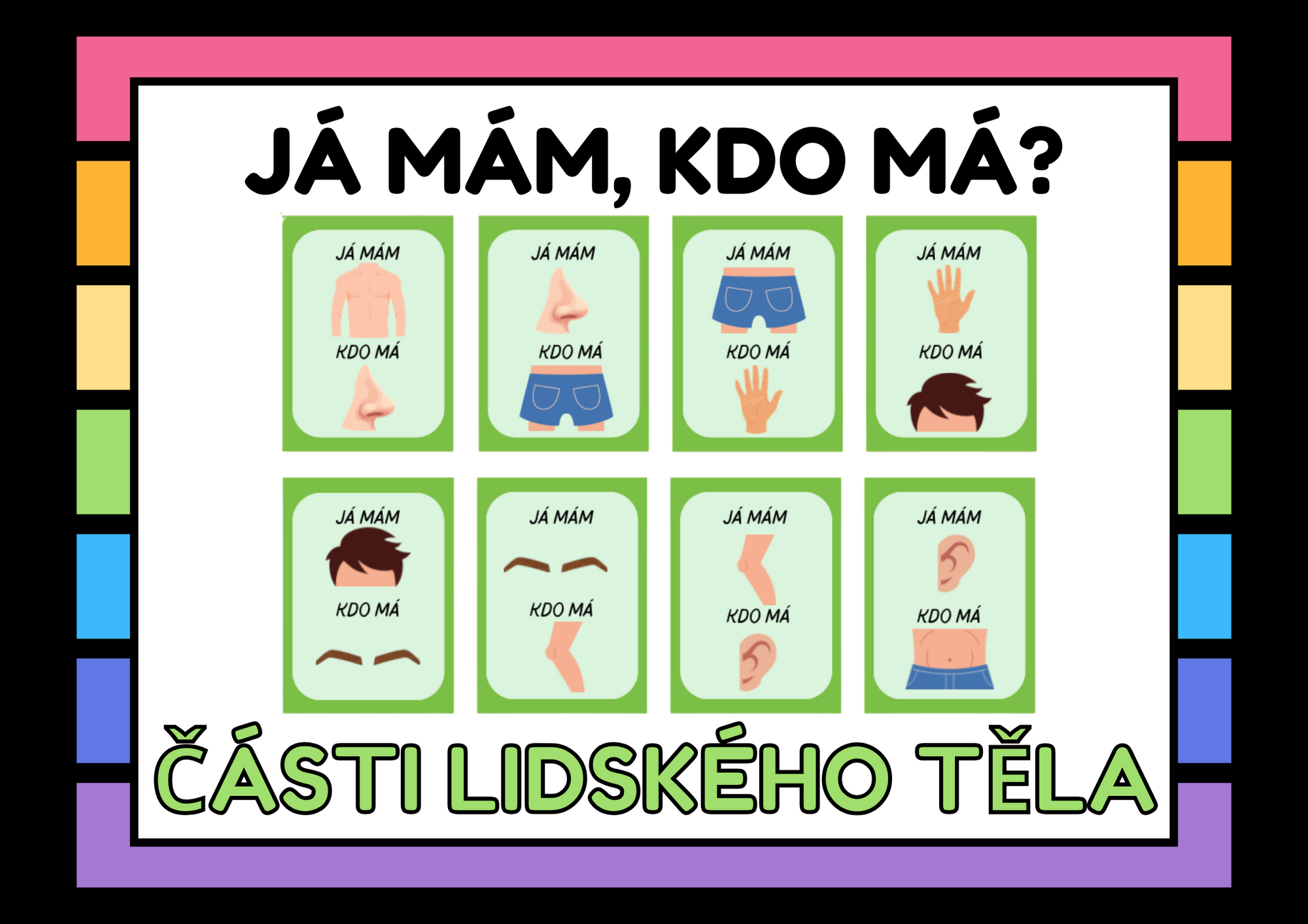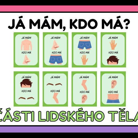 Kartičková hra Já mám, kdo má? na téma lidské tělo a jeho části. Vhodné jak pro děti v MŠ, tak žáky ZŠ.
