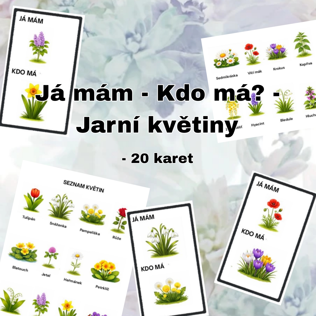 Materiál je tematicky zaměřen na jarní květiny a je zpracován formou oblíbené didaktické hry Já mám, kdo má? Obsahuje Seznam květin a 5 stránek po 4 kartách = 20 karet.