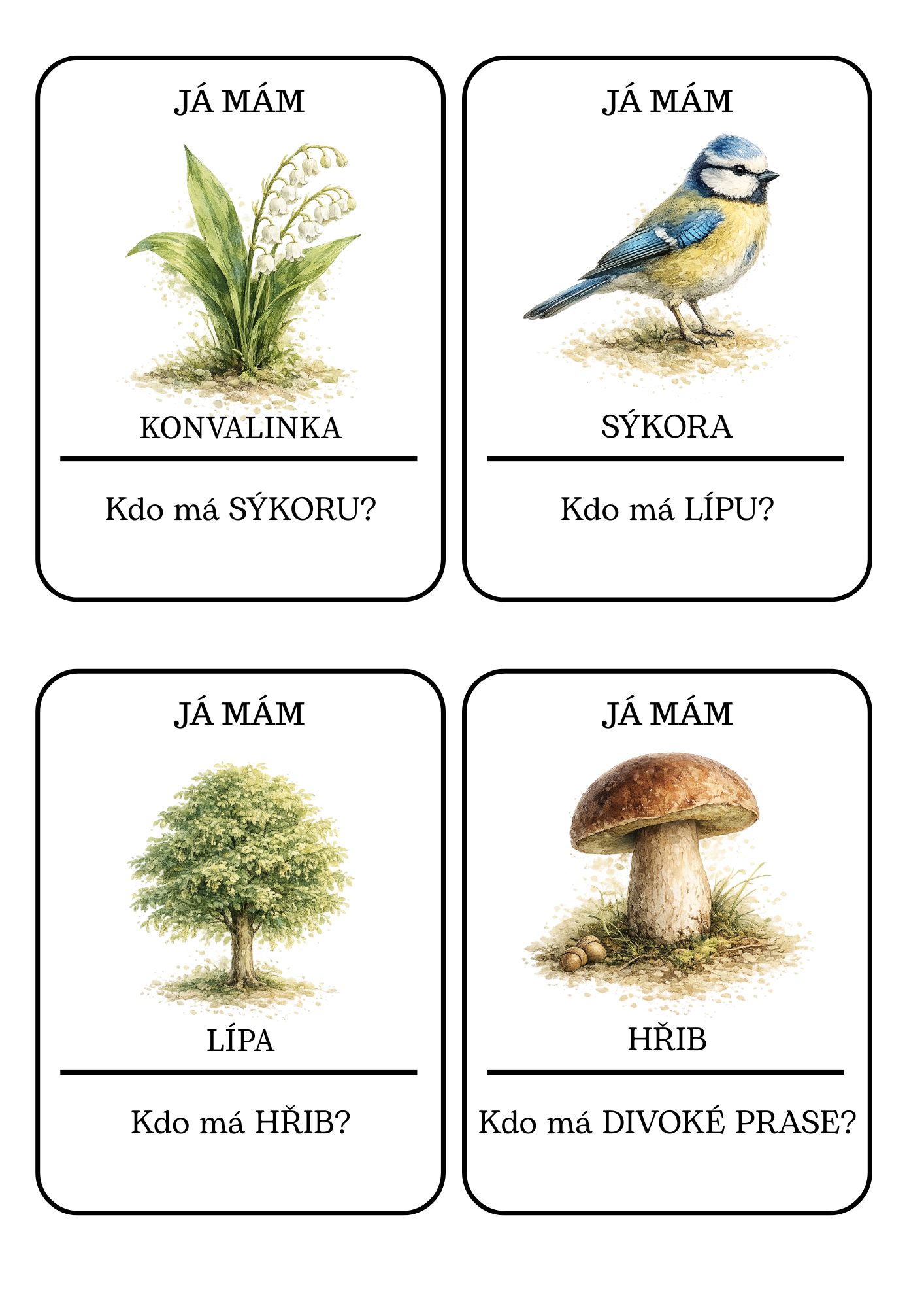🃏 32 hracích karet ke hře „Já mám, kdo má“