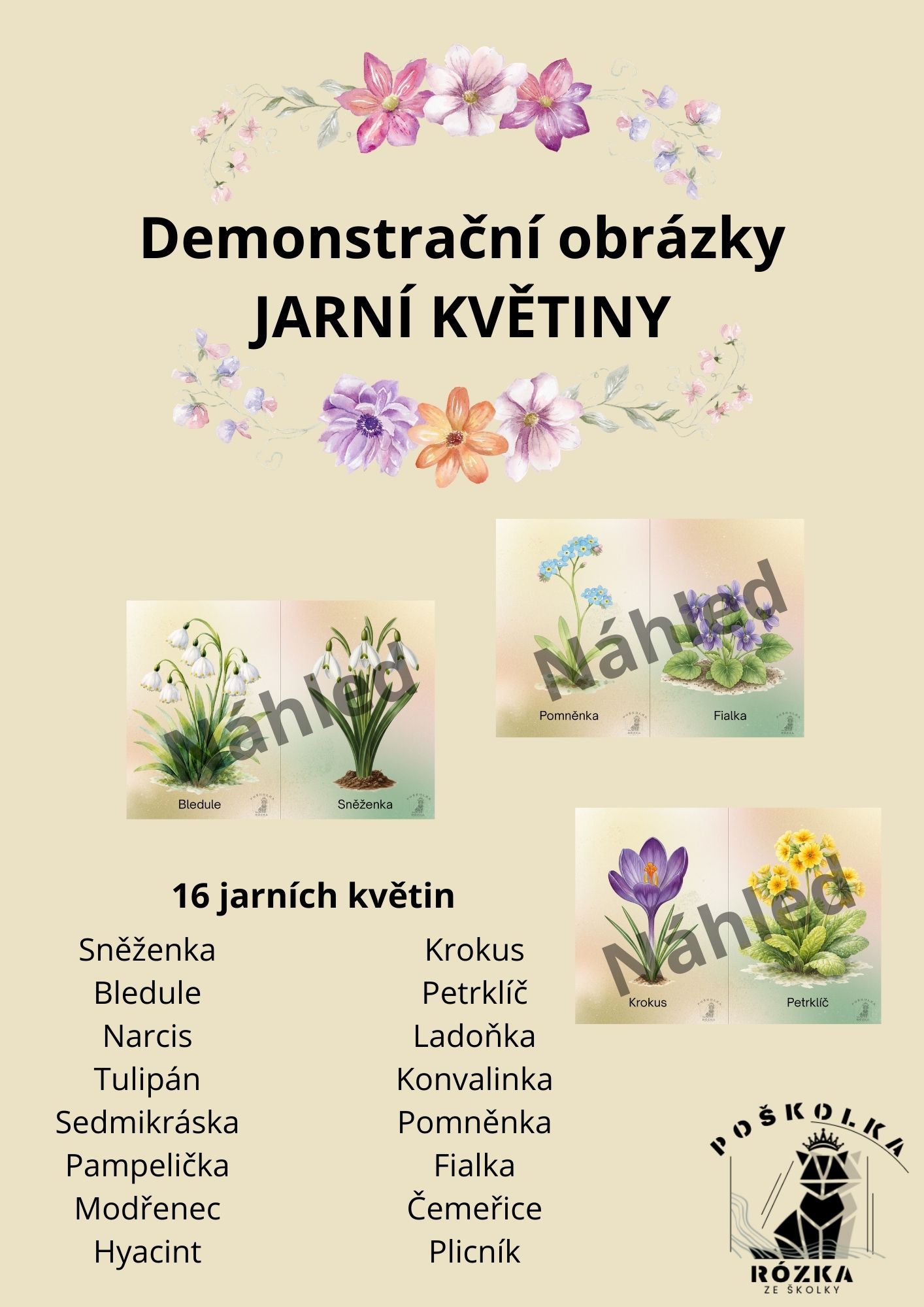 Tento materiál je vhodný pro všechny děti, které chcete seznámit s jarními květinami.