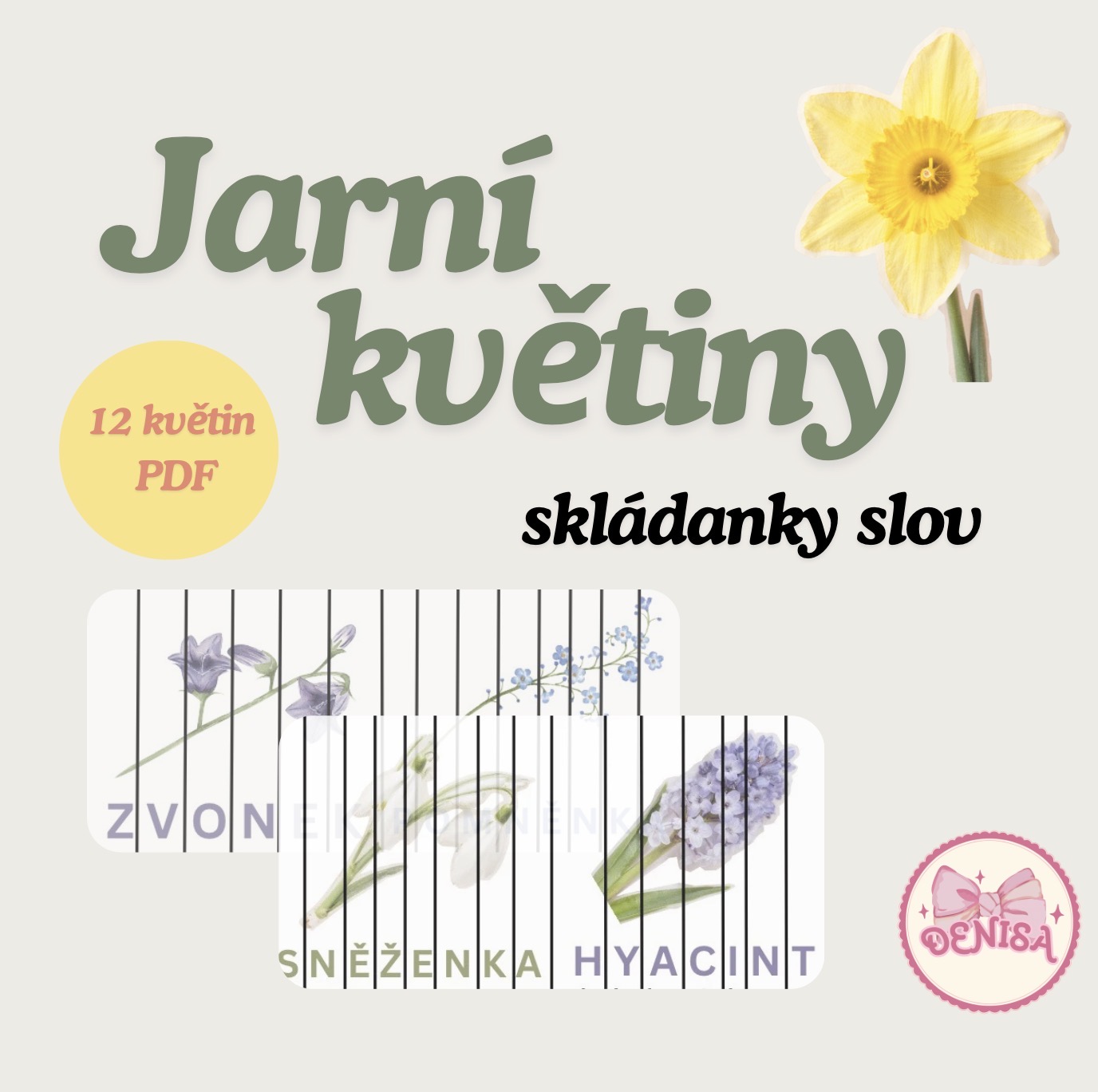Tento soubor obsahuje 12 obrazových skládanek se jmény jarních květin. Každá kartička kombinuje ilustraci květiny a rozdělený nápis jejího názvu, který je třeba „poskládat“ dohromady. Aktivita propojuje vizuální vnímání, práci se slovem a jemnou pozornost.
