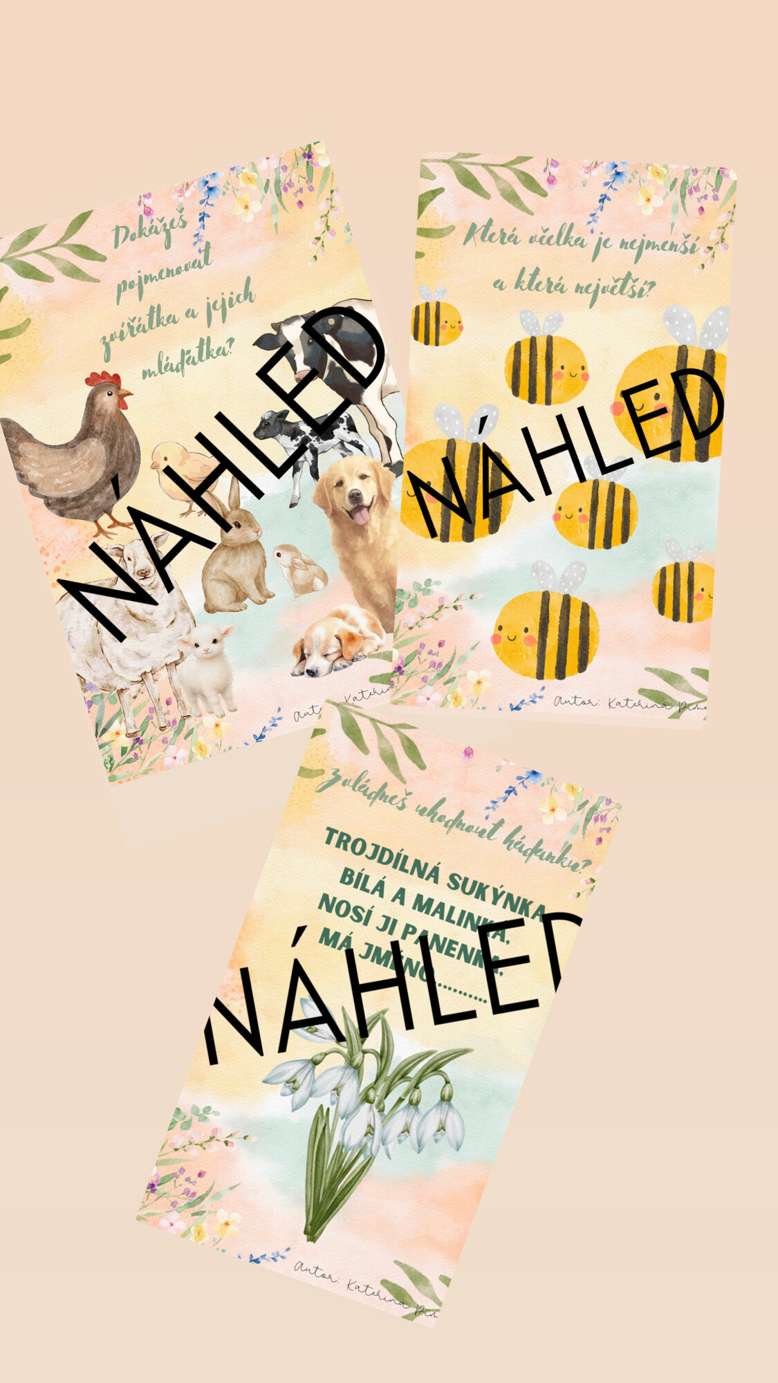 - témata: jaro, mláďátka, zvířátka, květiny, Velikonoce