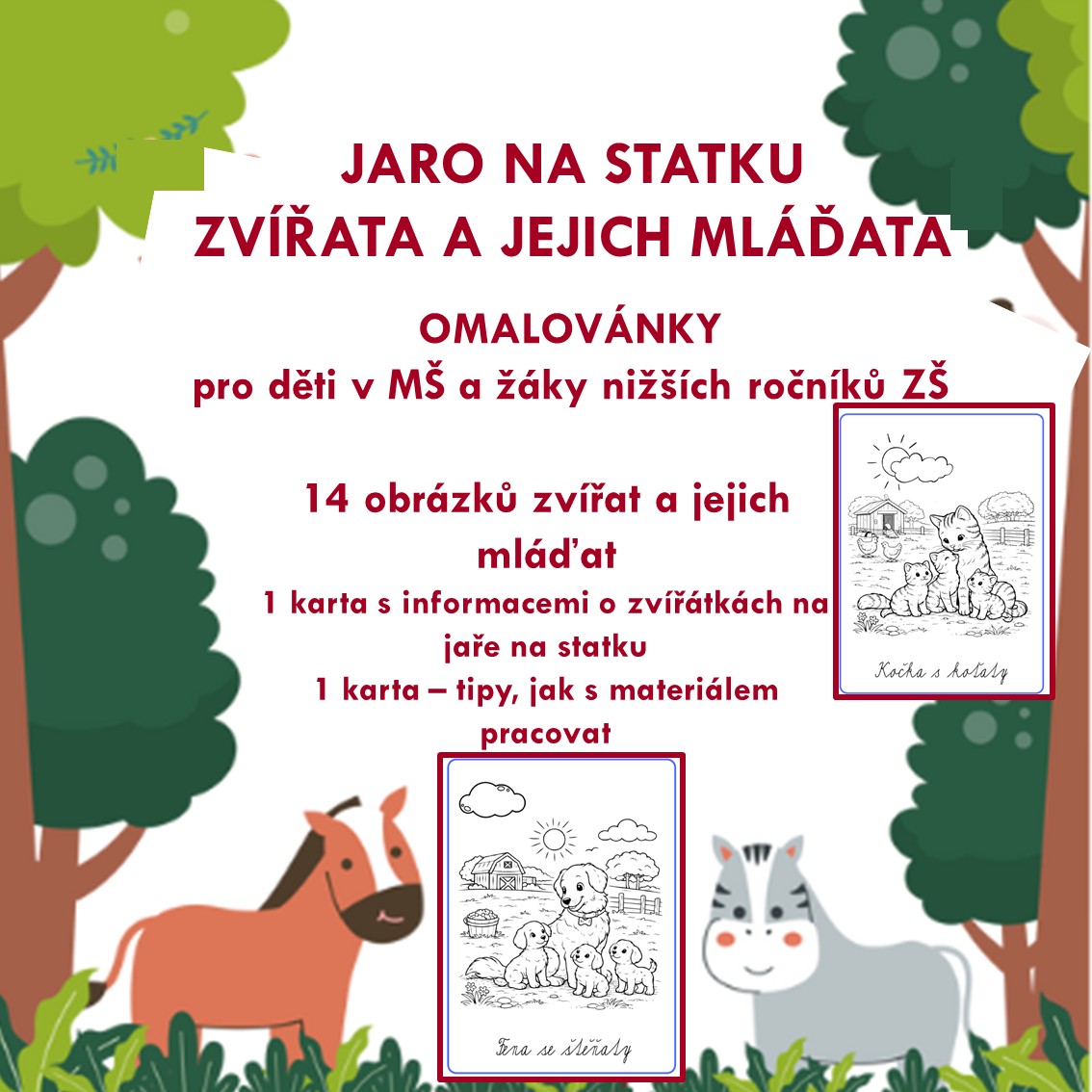 · 7 A4 stran (vždy 2 obrázky na jedné straně) omalovánky s hospodářskými a domácími zvířaty a jejich mláďaty