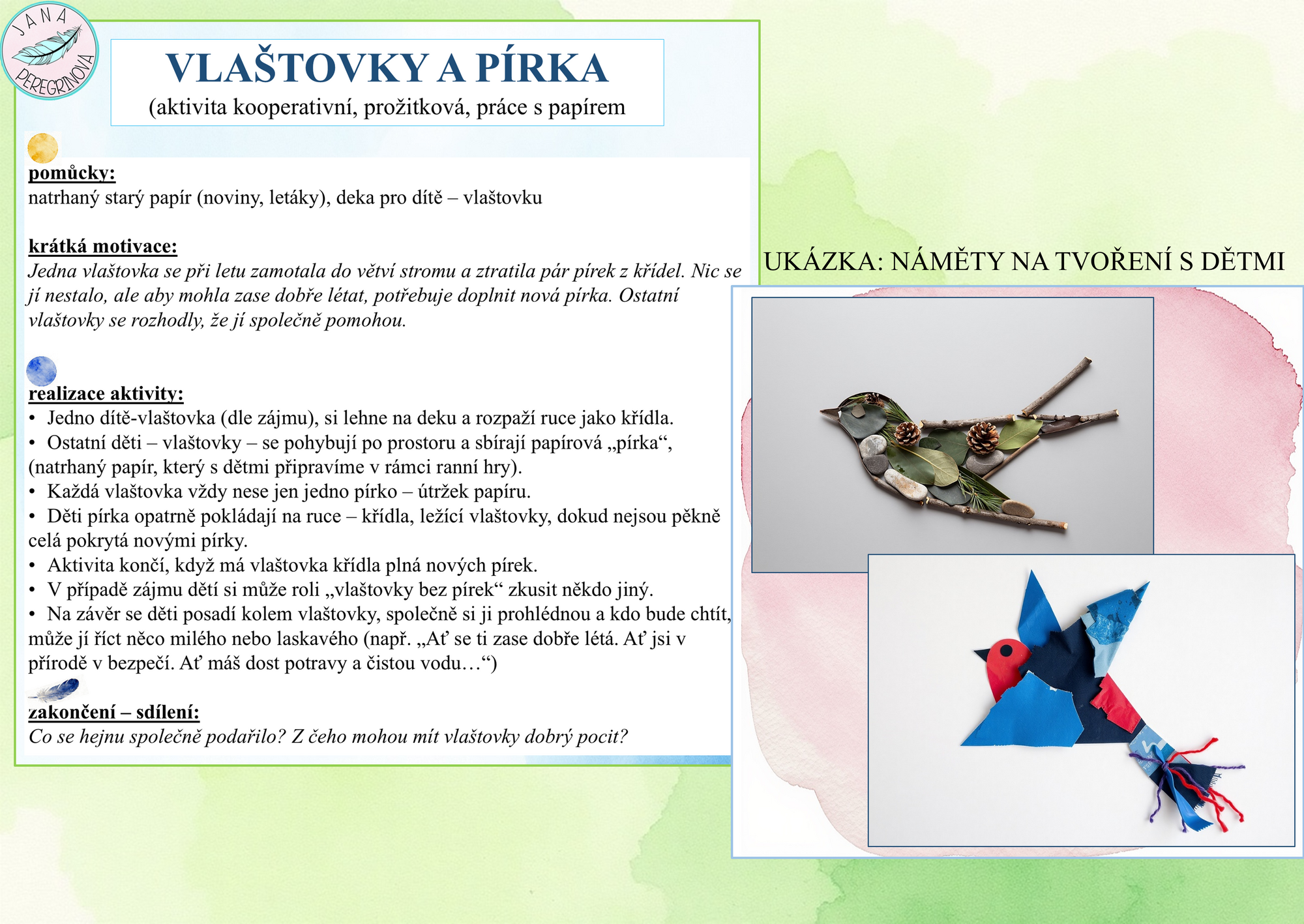 Součástí výukového materiálu jsou také náměty na tvoření s dětmi na téma vlaštovky