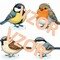 4x identifikační miniatury (sýkorka, červenka, vrabec a brhlík)