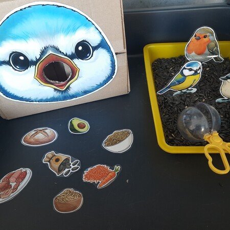 Základem sady jsou interaktivní aktivity zaměřené na správné přikrmování. Skrze kreativní prvek „krmící hlavy“ a miniatury různých potravin se děti učí kriticky hodnotit, co je pro ptáčky bezpečné. Důraz je kladen zejména na prevenci – děti se dozvídají, proč jsou pro nás zdravé věci, jako je avokádo, pro ptáky nebezpečným jedem. Tato aktivita v dětech buduje zodpovědnost a učí je chápat rozdílné potřeby různých živočichů.