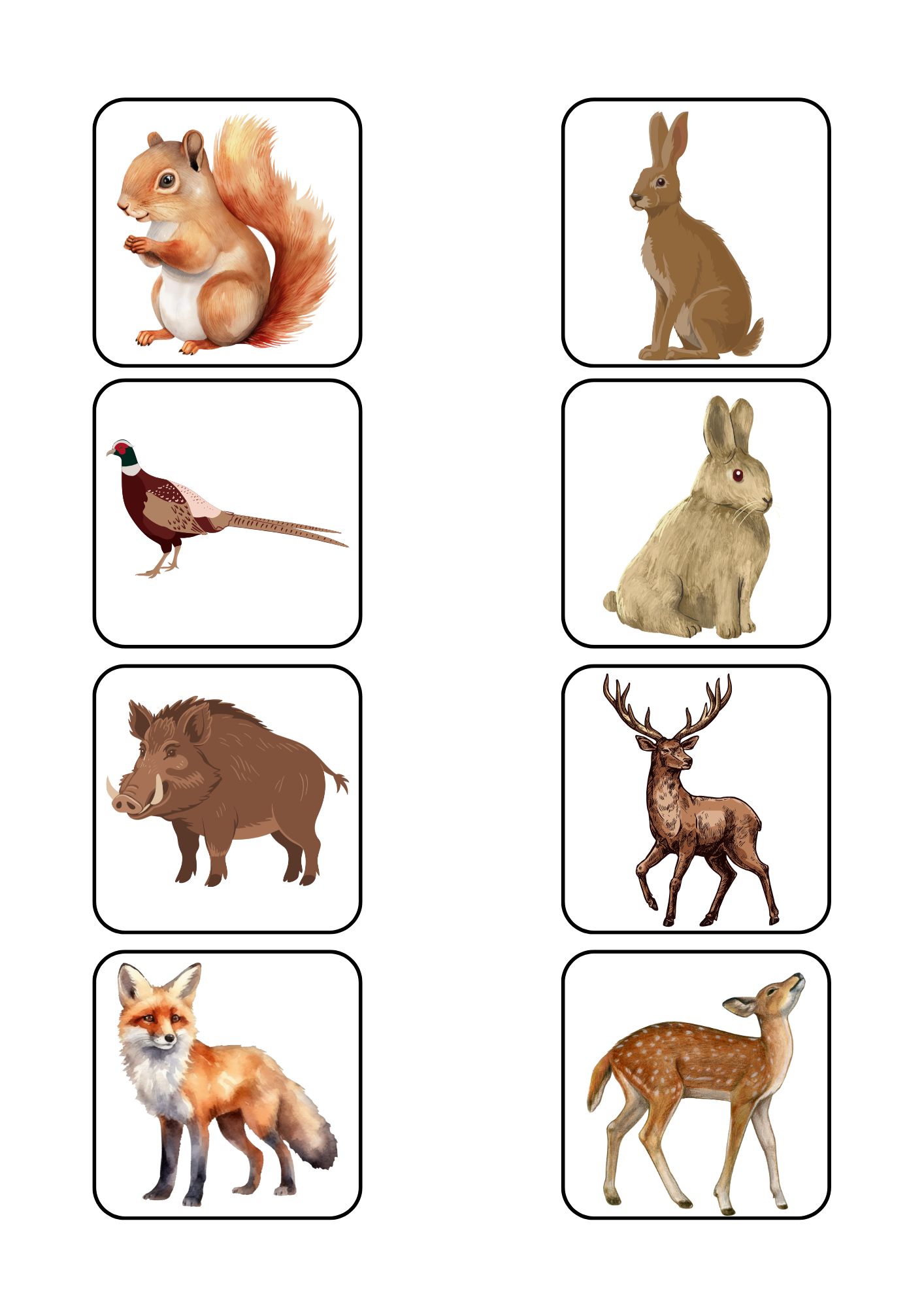 Soubor obsahuje kartičky 30 druhů lesní zvěře na hru Já mám ..., kdo má ...? Soubor je vytvořen v programu Canva Pro