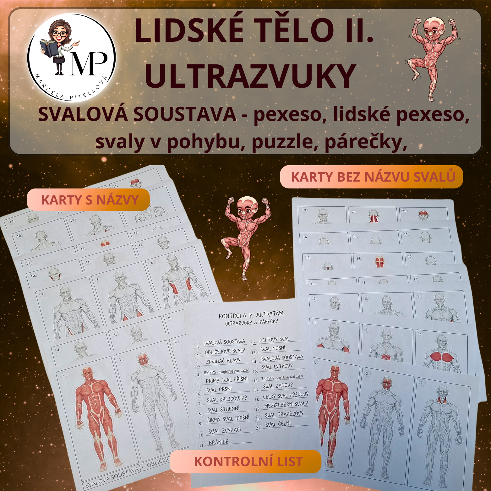 - Tento didaktický materiál umožňuje efektivní a zároveň zábavnou výuku svalů v lidském těle.