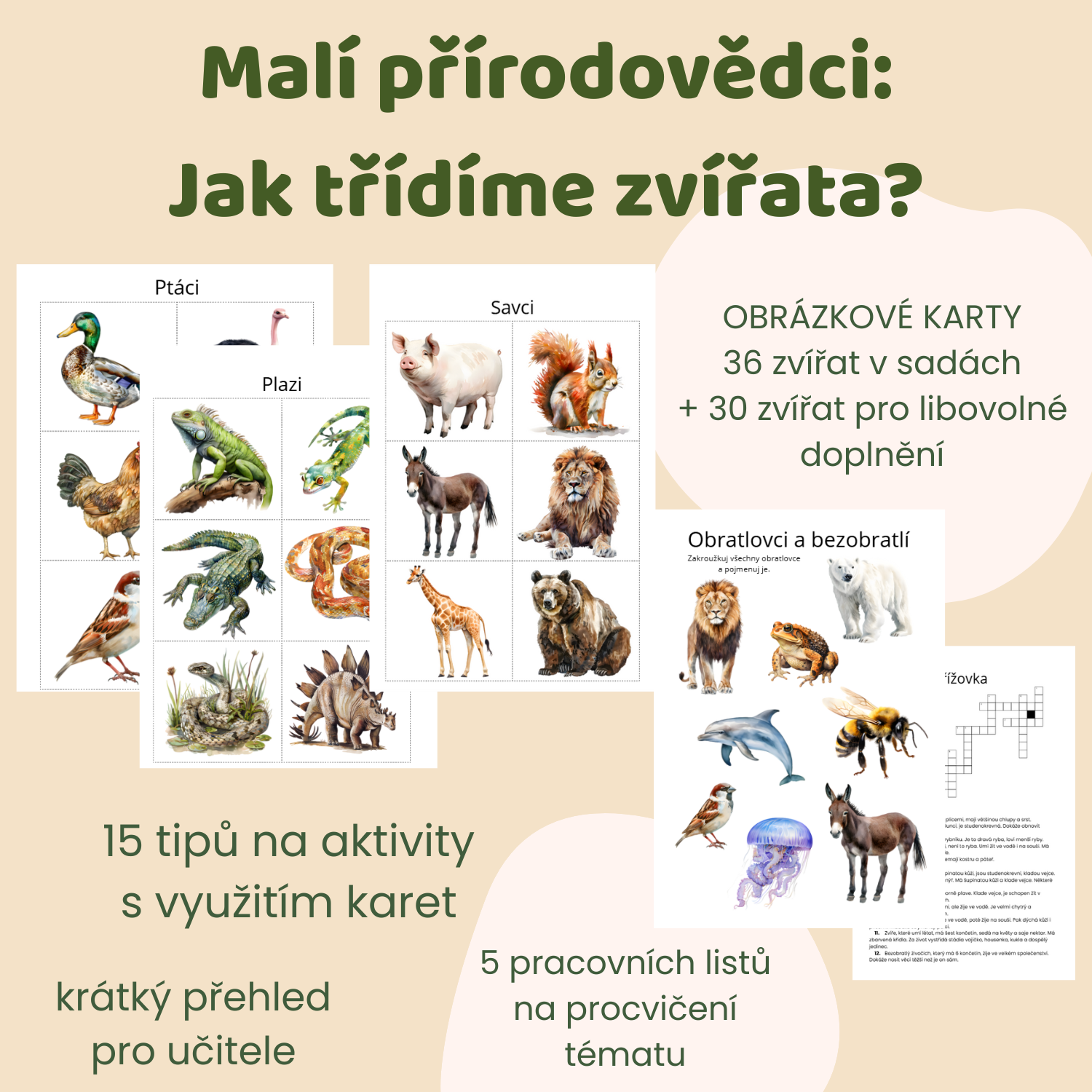 Díky materiálu žák porozumí základům třídění zvířat, bude je přirozeně třídit, porovnávat, všímat si detailů a rozvíjet logické myšlení.