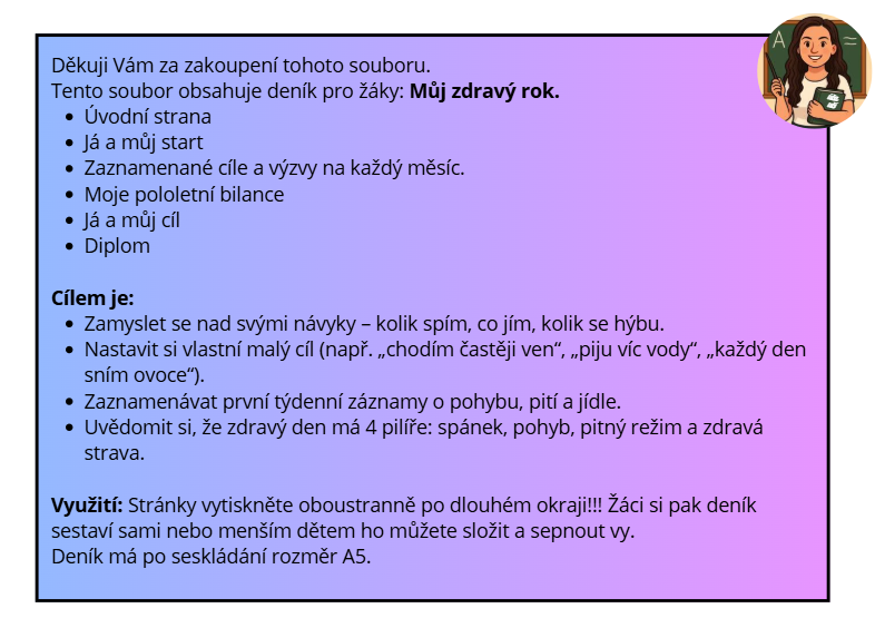 Tento soubor obsahuje deník pro žáky: Můj zdravý rok.