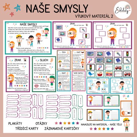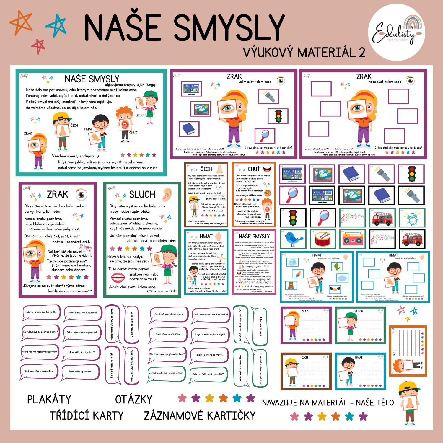 Tento výukový materiál seznamuje děti s pěti základními smysly – formou plakátů, diskusních otázek, třídicích kartiček a záznamových listů. Každý smysl je dětem přiblížen srozumitelně, názorně a s možností aktivního zapojení.