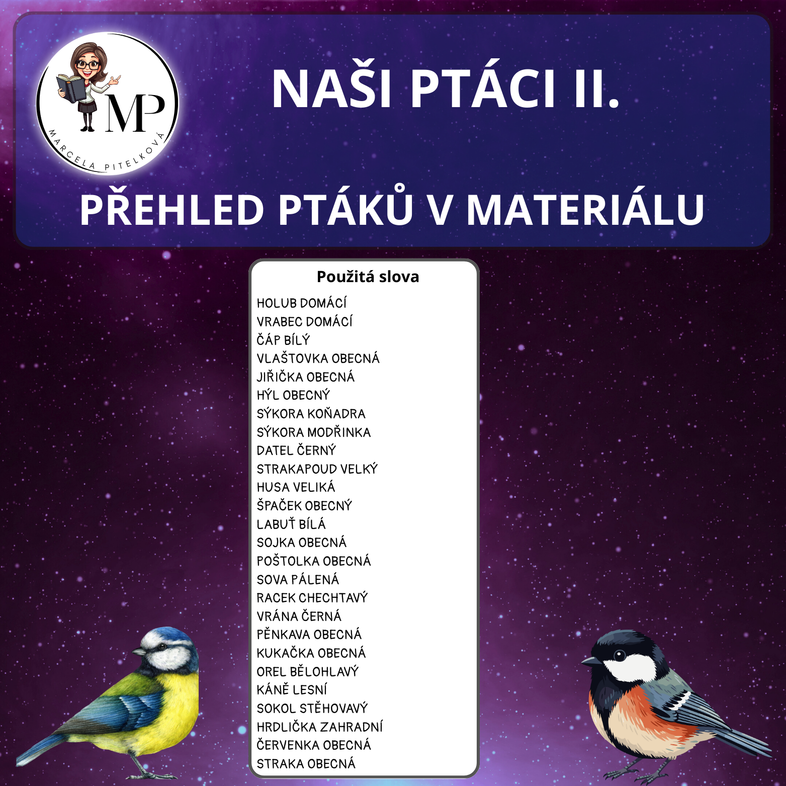 - DEMONSTRAČNÍ KARTY S NÁZVY 26 ptáků