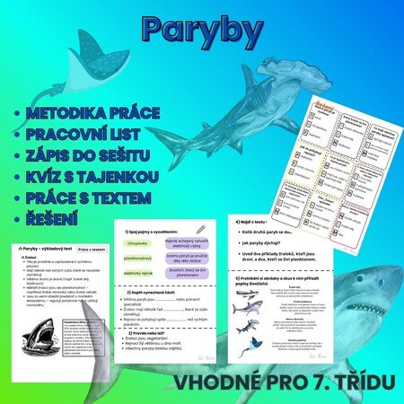 - Výkladový text o parybách (žraloci, rejnoci, chiméry)