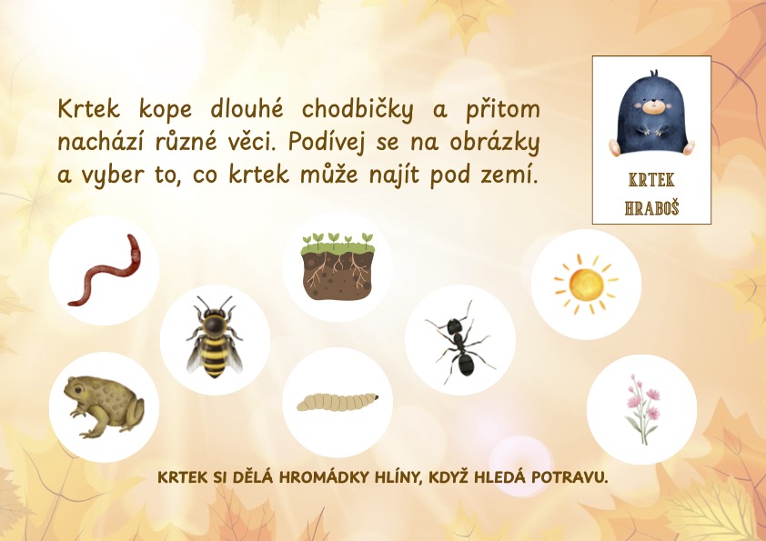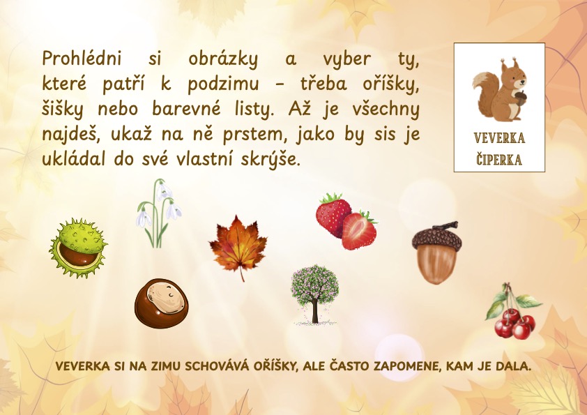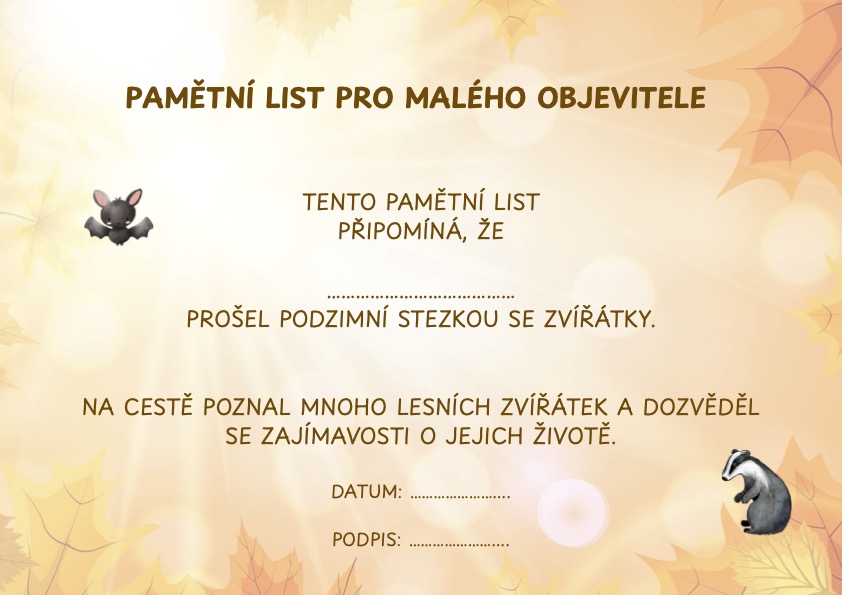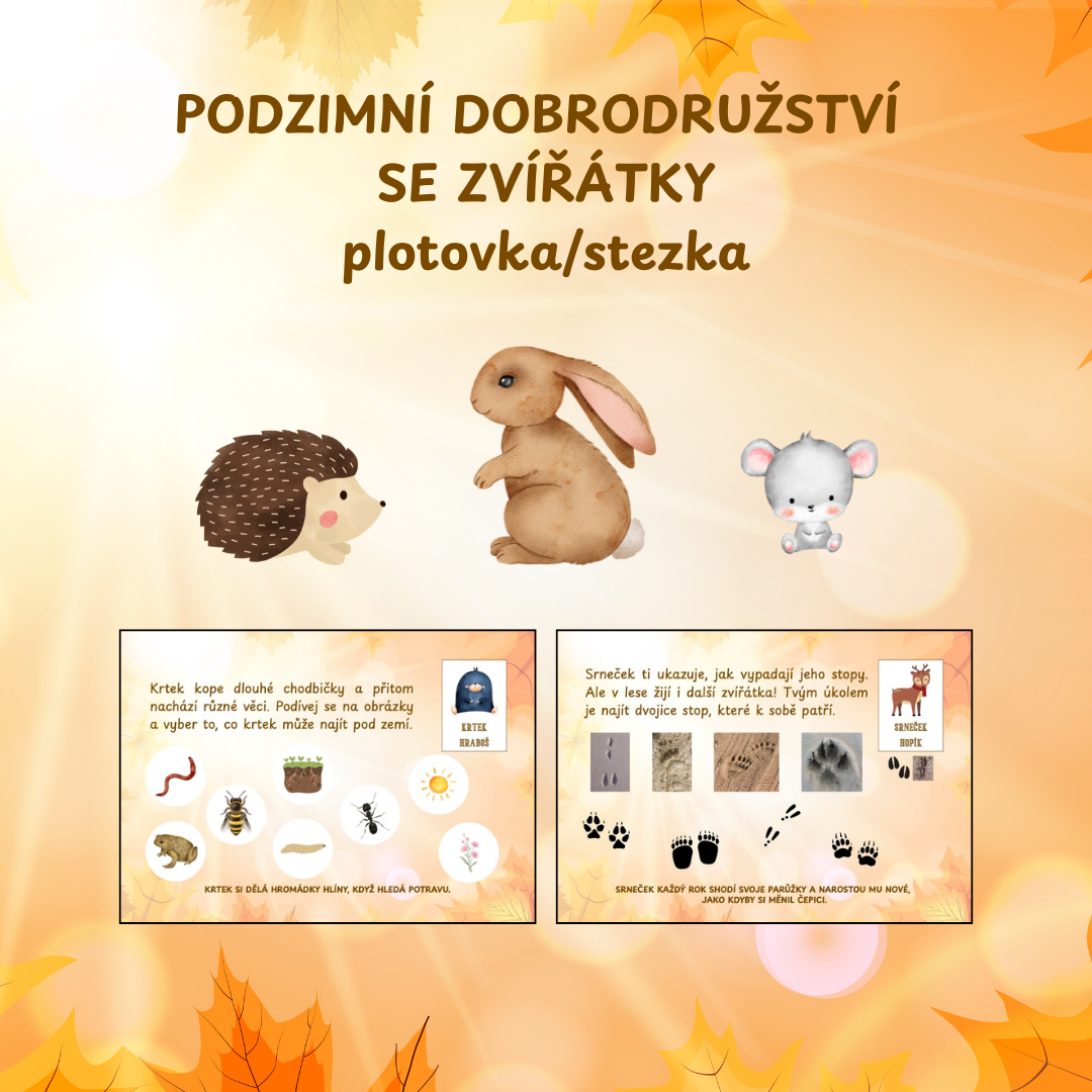 Podzimní dobrodružství se zvířátky je tematická stezka určená dětem předškolního a mladšího školního věku, která je zábavným spojením pohybu, poznávání a učení formou hry.
