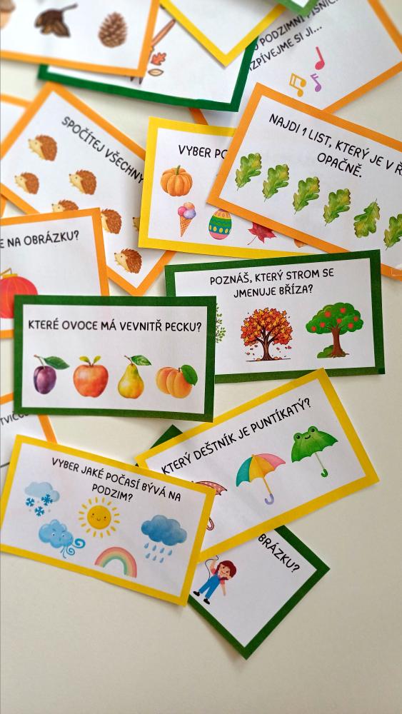Kartičky jsou samy o sobě vhodné také třeba jen tak do kruhu ve školce, na nástěnku nebo do šatny - rodiče si mohou zkoušet kvíz s dětmi.
