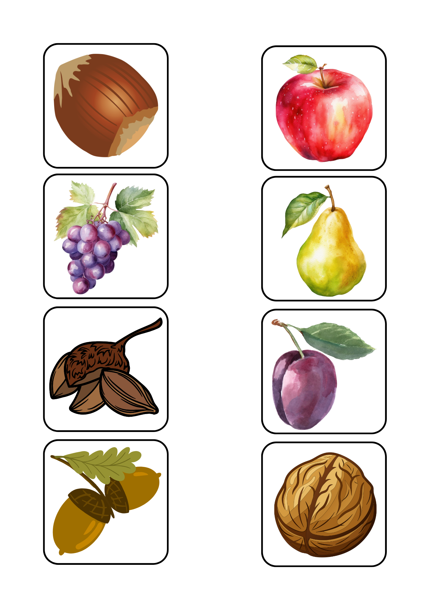 Kartičky 16 druhů podzimních plodů o velikosti 14x14 pro využití pro Bee-bot/Blue-Bot