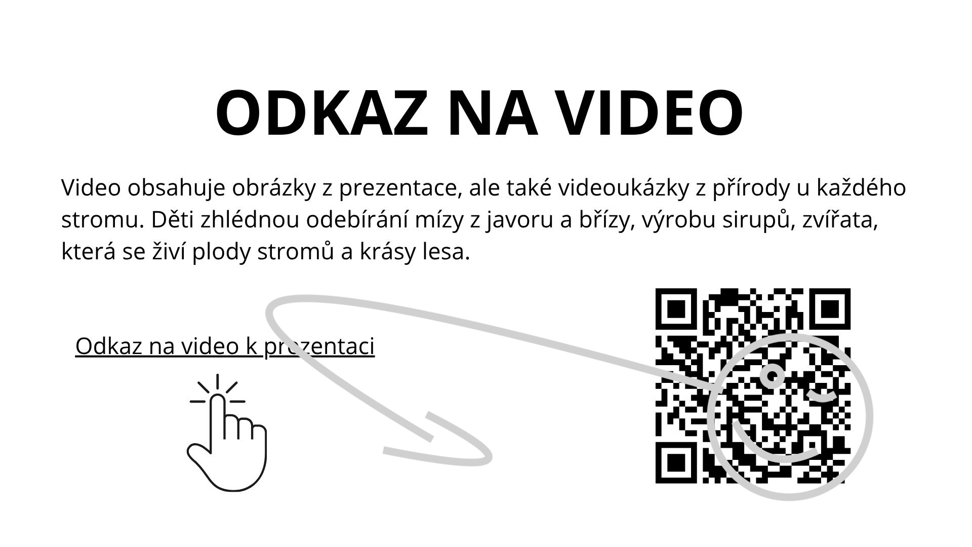 Na závěr materiálu je přiložen odkaz na soukromé video, které doplňuje učivo o autentické ukázky z přírody. Video obsahuje záběry jednotlivých stromů, jejich plodů i živočichů, kteří se jimi živí. Učitelé i žáci v něm uvidí například výrobu javorového a březového sirupu, zvířata využívající plody stromů jako potravu, a krásy lesa a parku v proměnách ročních období.