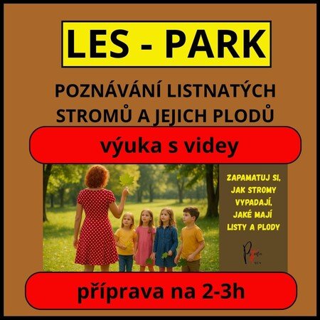 Tento výukový materiál s názvem Les – park: Poznávání listnatých stromů a jejich plodů má celkem 93 stran a je určen učitelům jako pomůcka k výuce o stromech. Je koncipován tak, aby se dal využít přibližně na dvě až tři vyučovací hodiny ve třídě, a poté navázat praktickým pozorováním venku – určováním stromů v přírodě, sběrem listů, plodů a tvorbou vlastního herbáře.