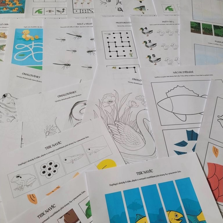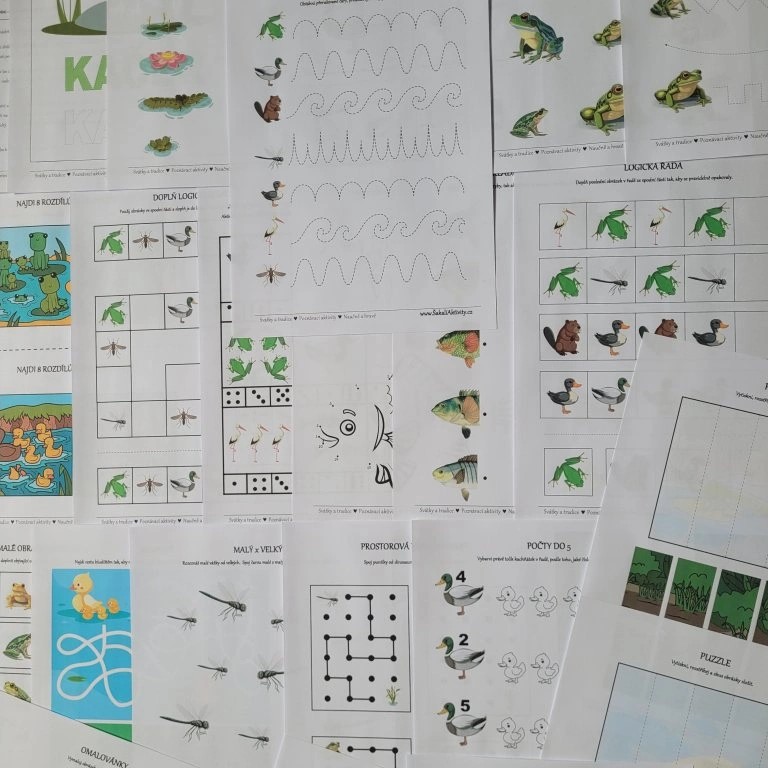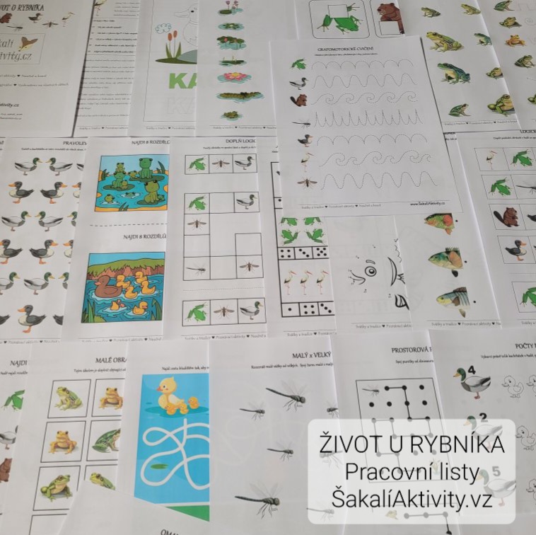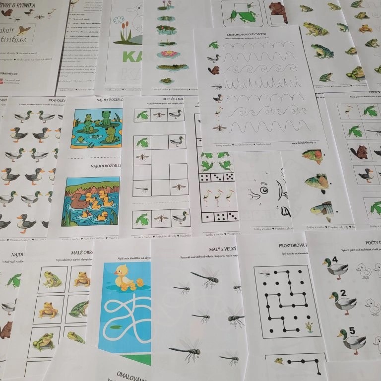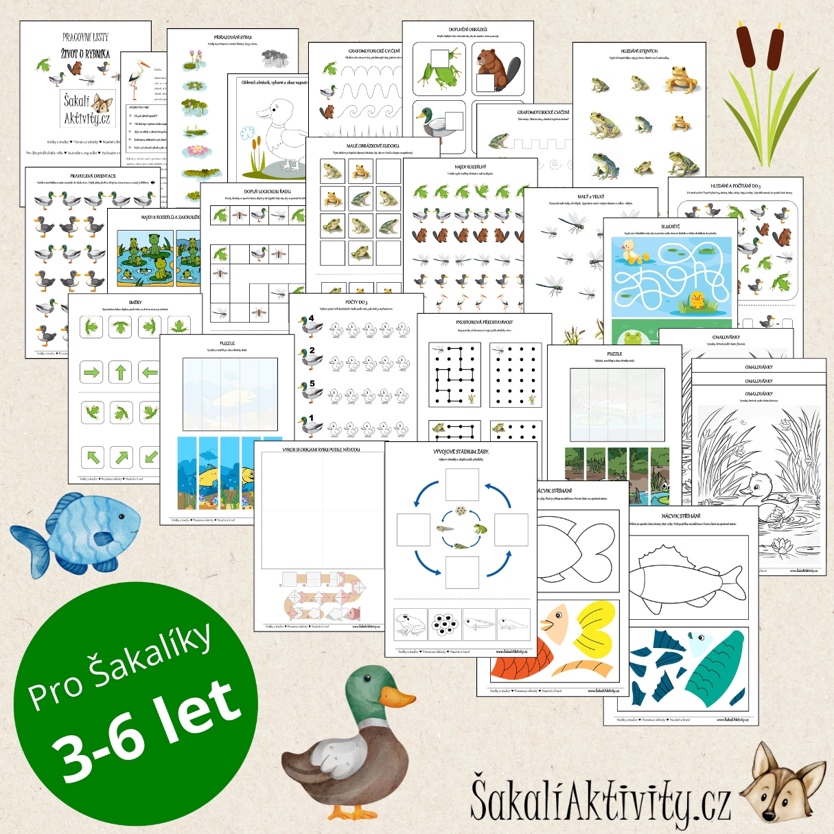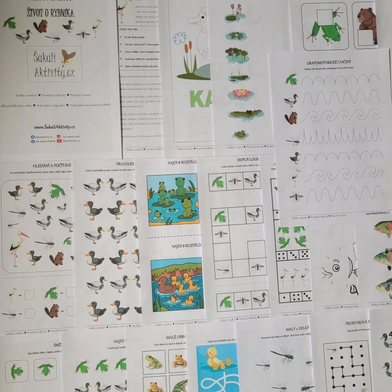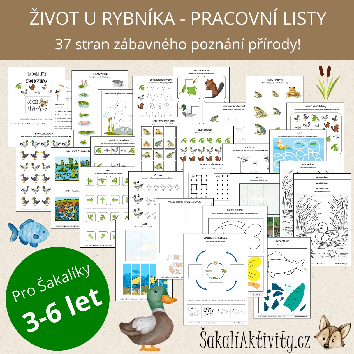 Vydejte se s dětmi na dobrodružnou výpravu do světa rybníků a jejich obyvatel! Tento obsáhlý pracovní soubor od ŠakalíAktivity.cz nabízí 37 stran plných hravých a naučných aktivit, které přiblíží dětem život u vody. Společně poznáte živočichy i rostliny – čekají na vás lekníny, rákosí, vážky, ryby, žáby a mnoho dalších přírodních zajímavostí.