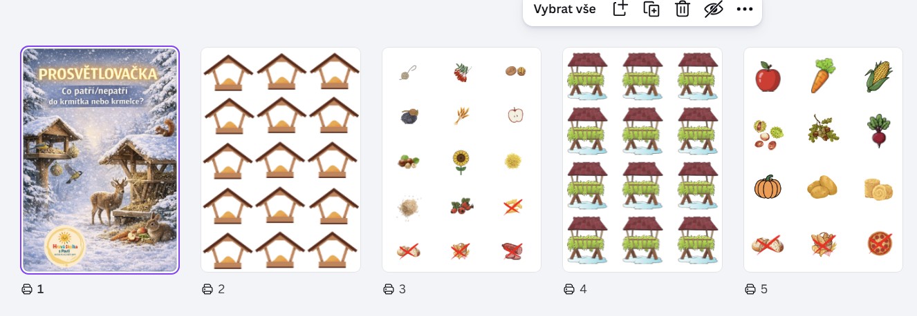 Tento materiál je určený hlavně pro děti 3–7 let. Pomocí obrázků a prosvětlování na světelném panelu se děti dozví, co je vhodné a co nevhodné dávat zvířátkům do krmelce a ptáčkům do krmítka. Děti si tak hravou formou osvojují správné návyky a poznávají, jak o přírodu pečovat.