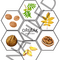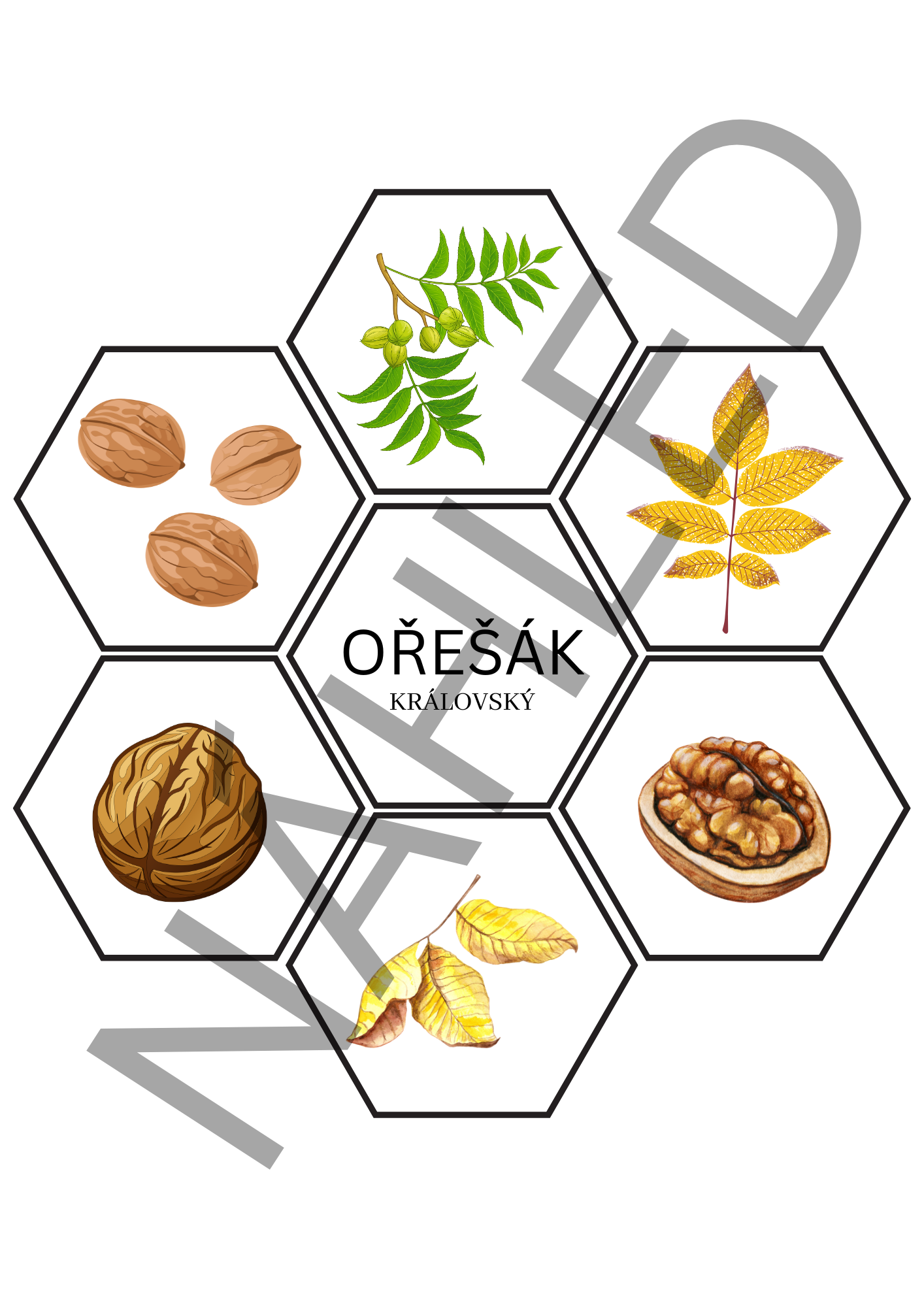 - 8 šestiúhelníkových skládaček s plody a listy stromů
