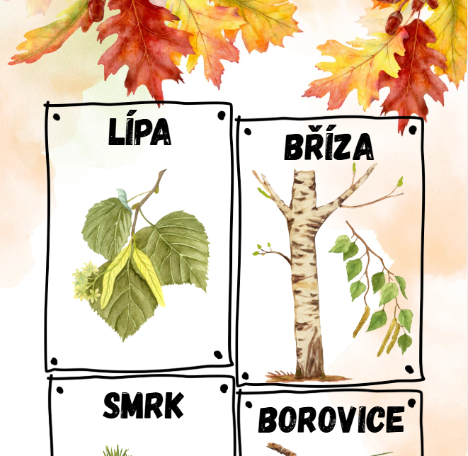 Demonstrační kartičky nejznámějších listnatých a jehličnatých stromů u nás.