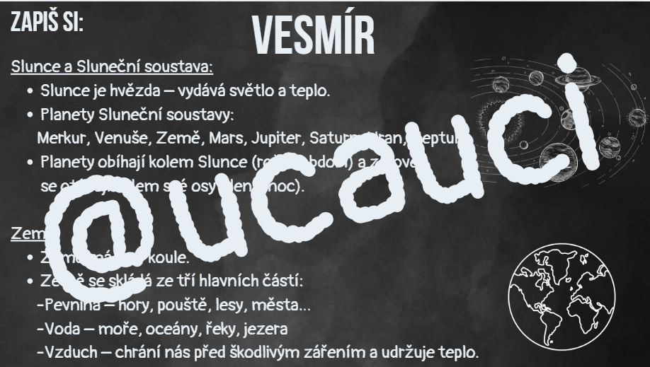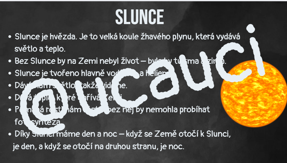 Využití: Prezentaci promítněte na tabuli, zápis si žáci pak opíšou do sešitu. Pak už si o tématu můžete jen popovídat nebo žákům pustit nějaké video.