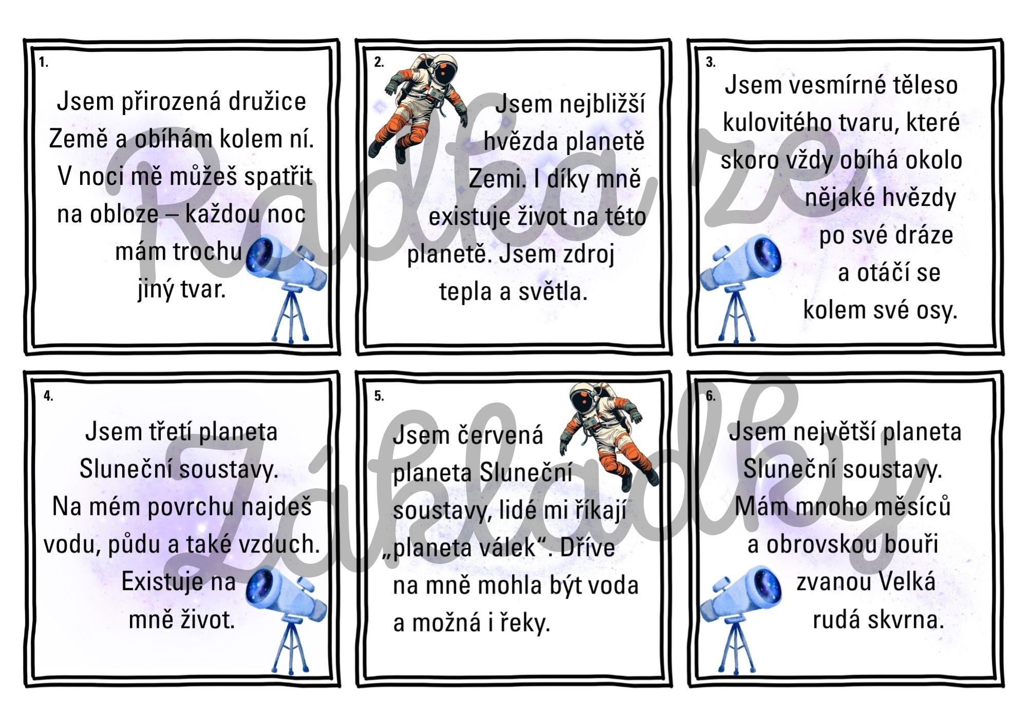 Tento materiál nabízí zábavnou a interaktivní formu, jak procvičovat znalosti o vesmíru – od planet Sluneční soustavy a pohybů Země, přes hvězdy, komety a galaxie.