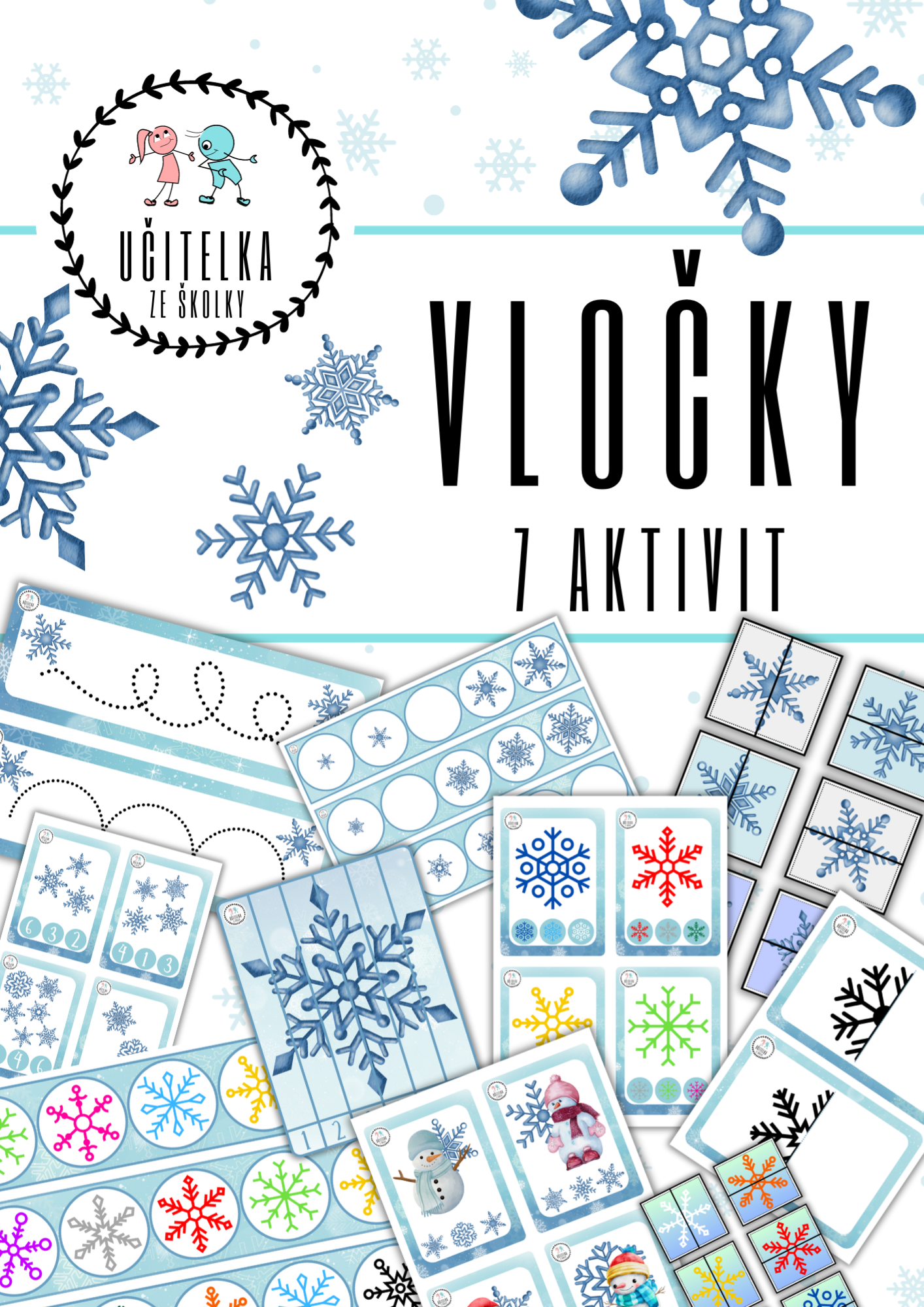 SOUBOR OBSAHUJE 7 aktivních materiálů, bude Vám tak k ruce při tvorbě příprav v zimním období VLOČKY - PŮLENÉ OBRÁZKY