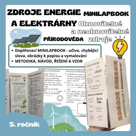 Doplňovací MINILAPBOOK na téma OBNOVITELNÉ A NEOBNOVITELNÉ ZDROJE ENERGIE A ELEKTRÁRNY. Obsahuje vše, co potřebuje žák vědět. Pomůže dětem se lépe orientovat v tomto učivu a usnadní jim učení.