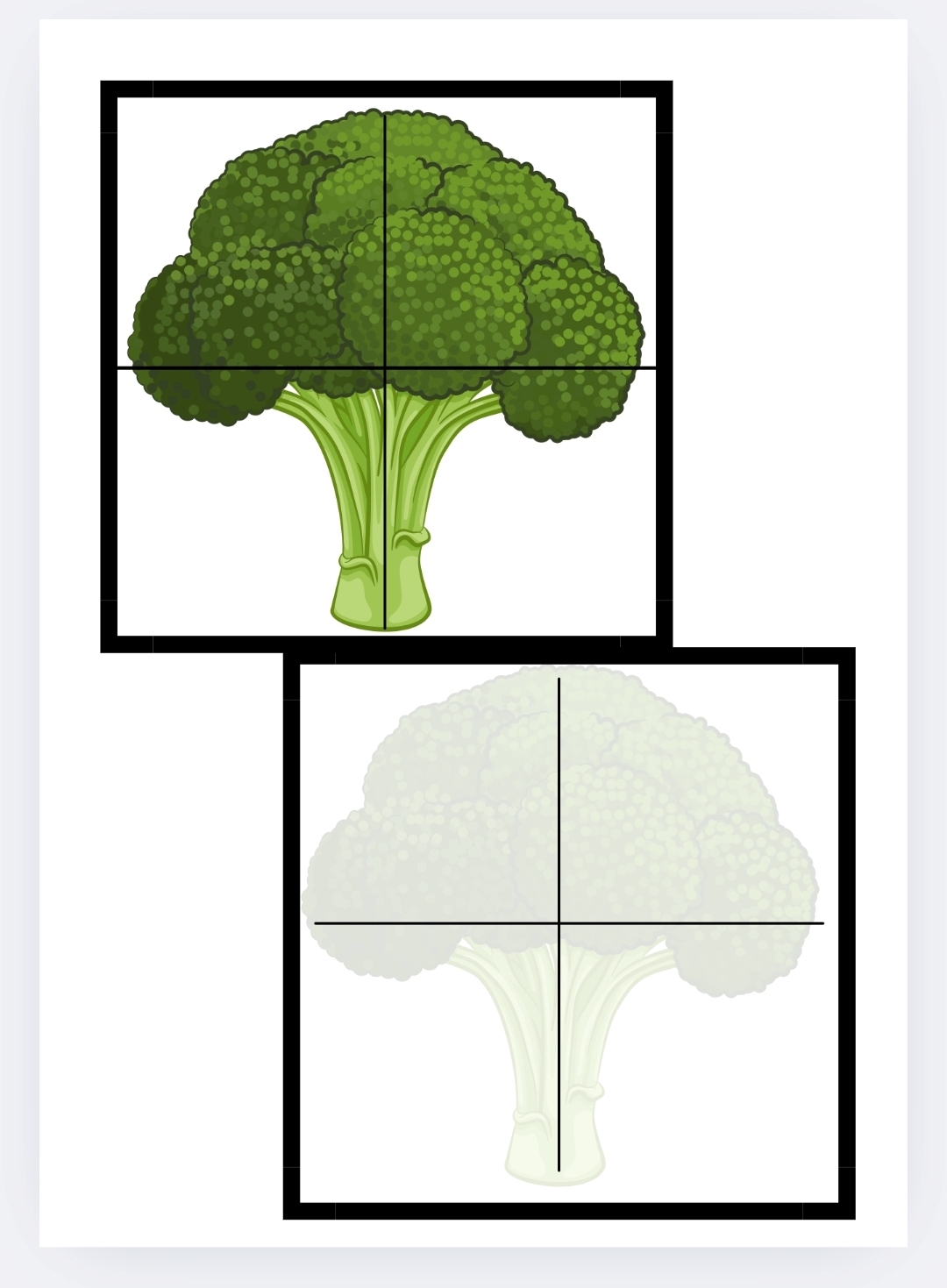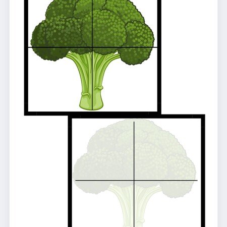 Na osmi stránkách jsou skládačky zeleniny ze dvou a čtyř dílů. Na dalších čtyřech stránkách je zelenina v různých velikostech.