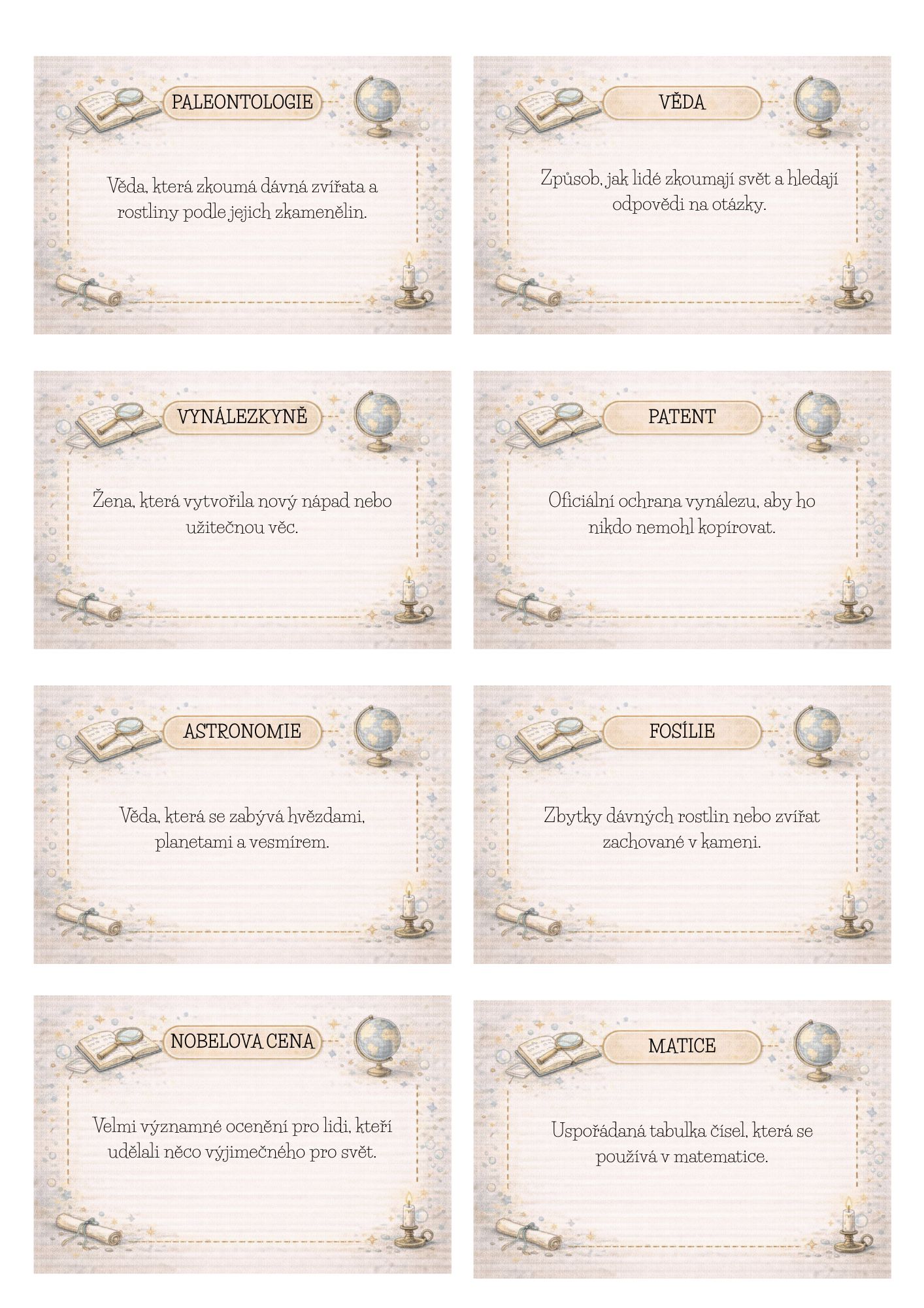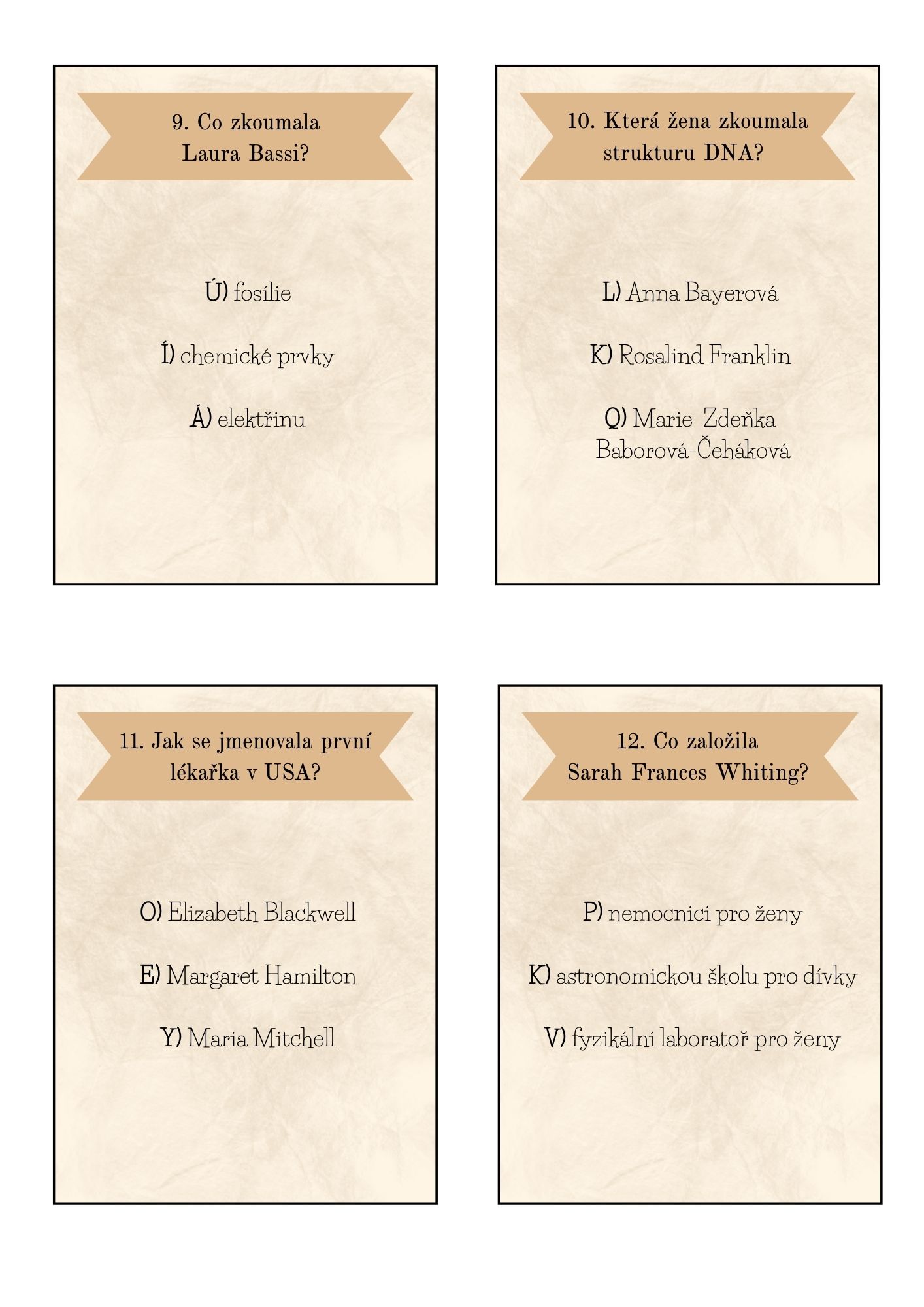 Jméno, životní data a přehledné informace o tom, čím se každá z nich proslavila. - 16 kartiček s pojmy 🧩