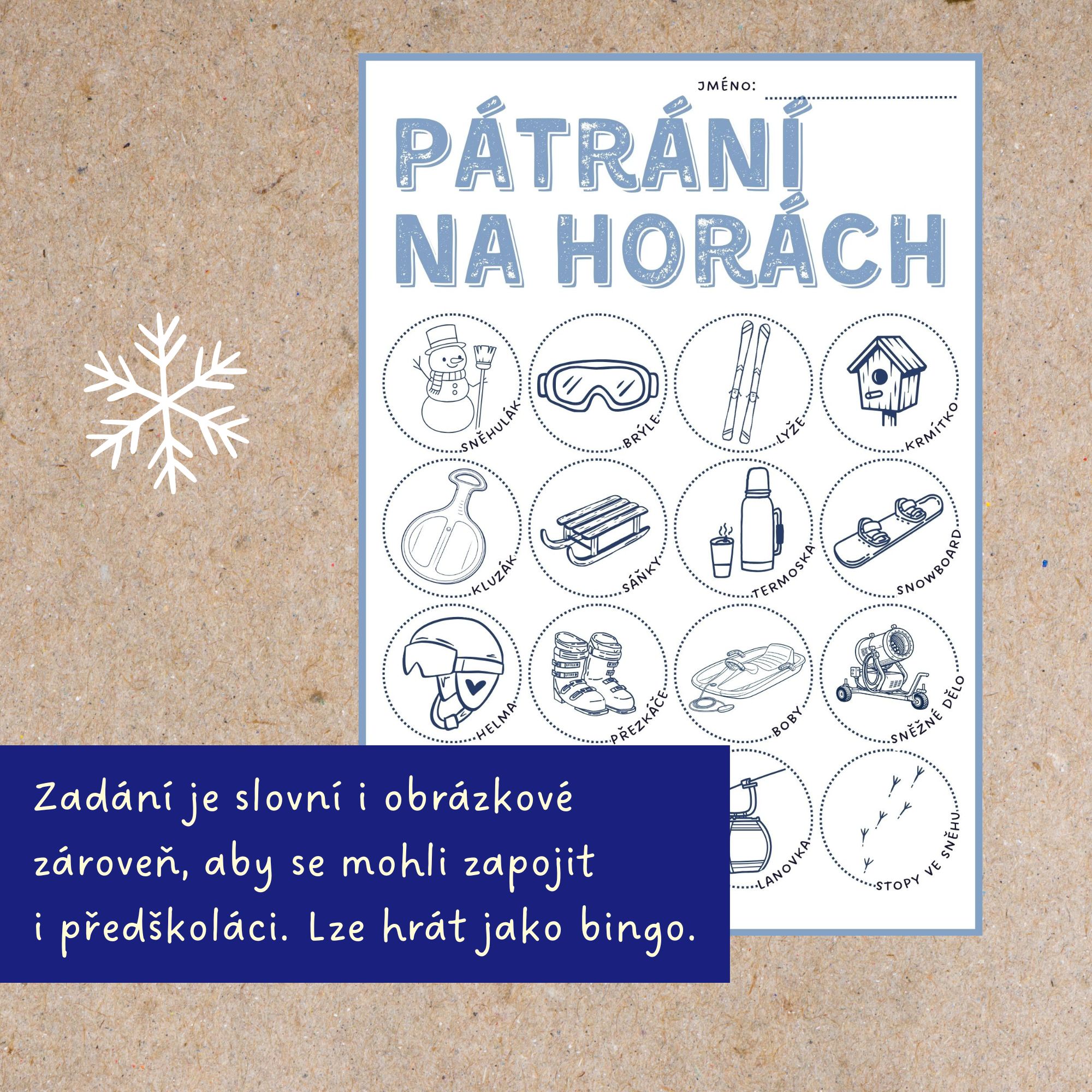 ❄️Pokud Vás baví pátrácí hry, podívejte se na naše LESNÍ, PODZIMNÍ nebo pátrací listy DO AUTA.