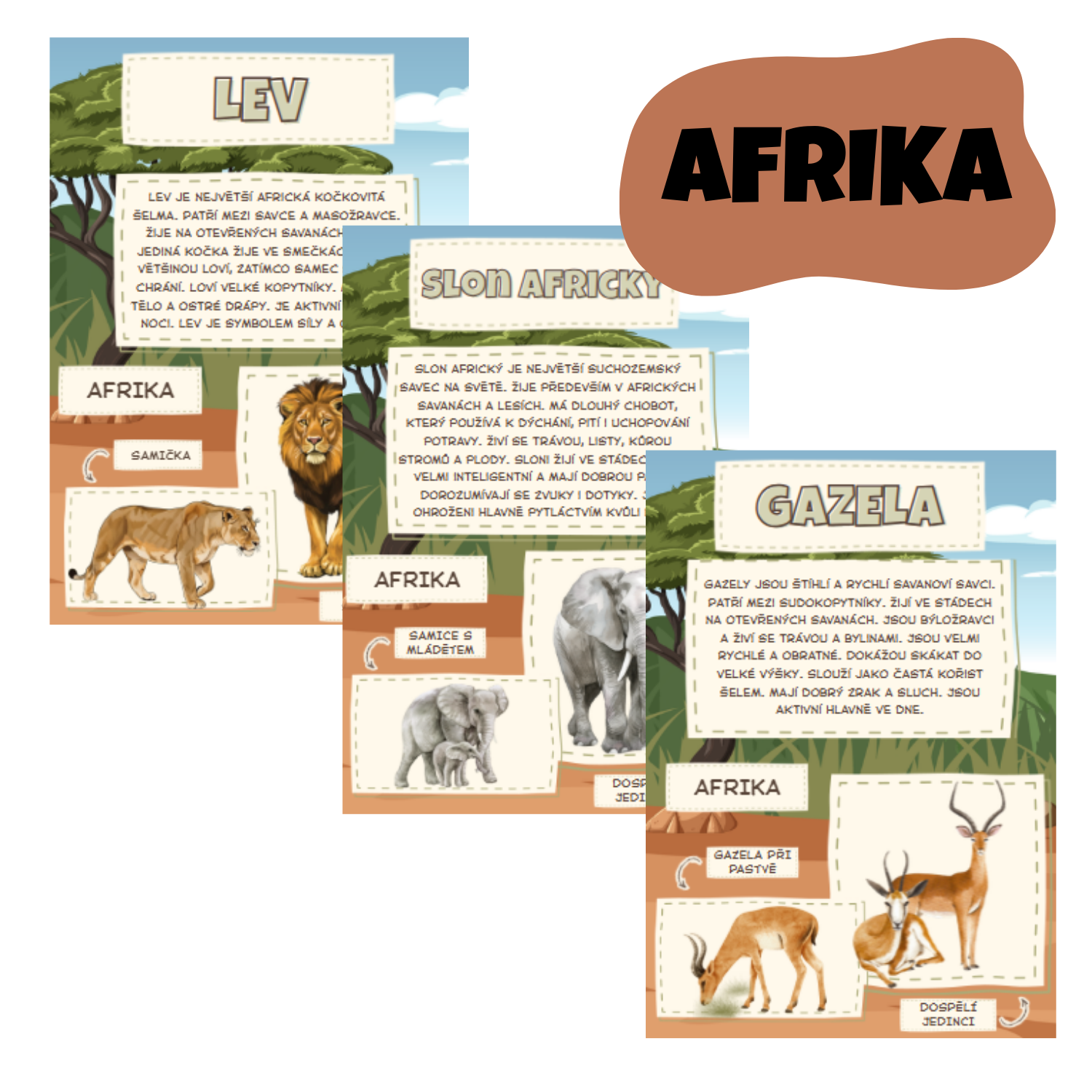 - využít můžete během vyučovací hodiny jako informační kartičky se základními informacemi o živočiších typicky se vyskytujících se na savanách