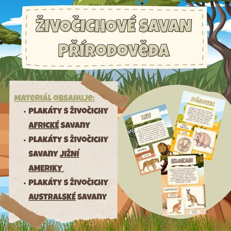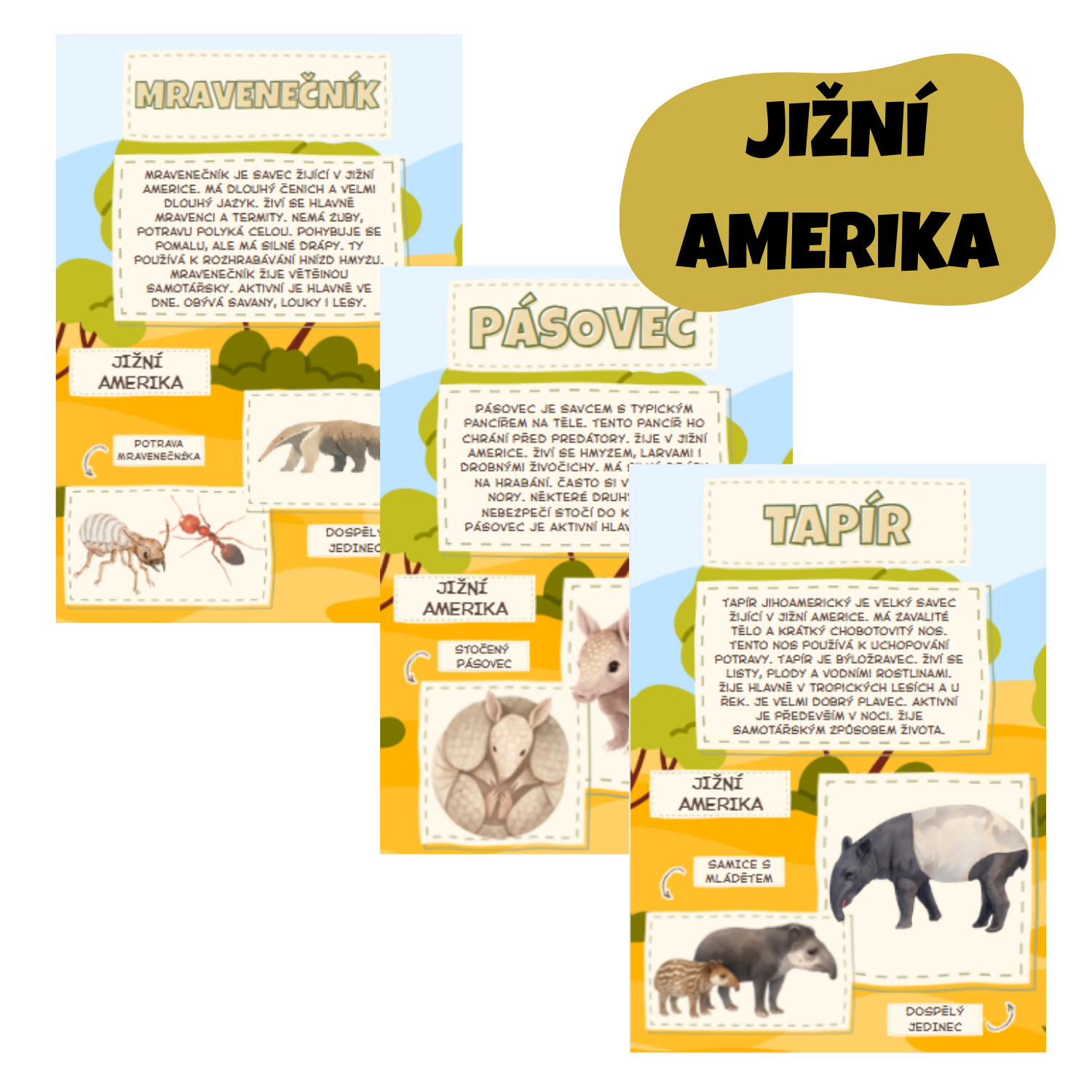 - plakáty s živočichy savany JIŽNÍ AMERIKY