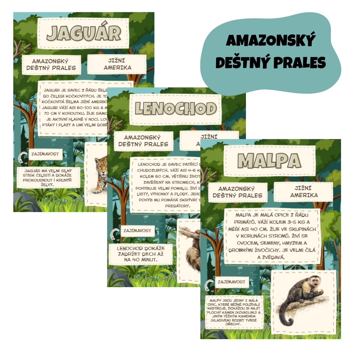 - plakáty s živočichy AMAZONSKÉHO deštného lesa (str. 3 - 19)