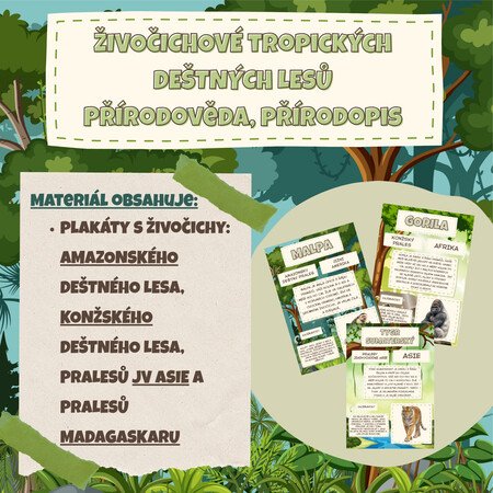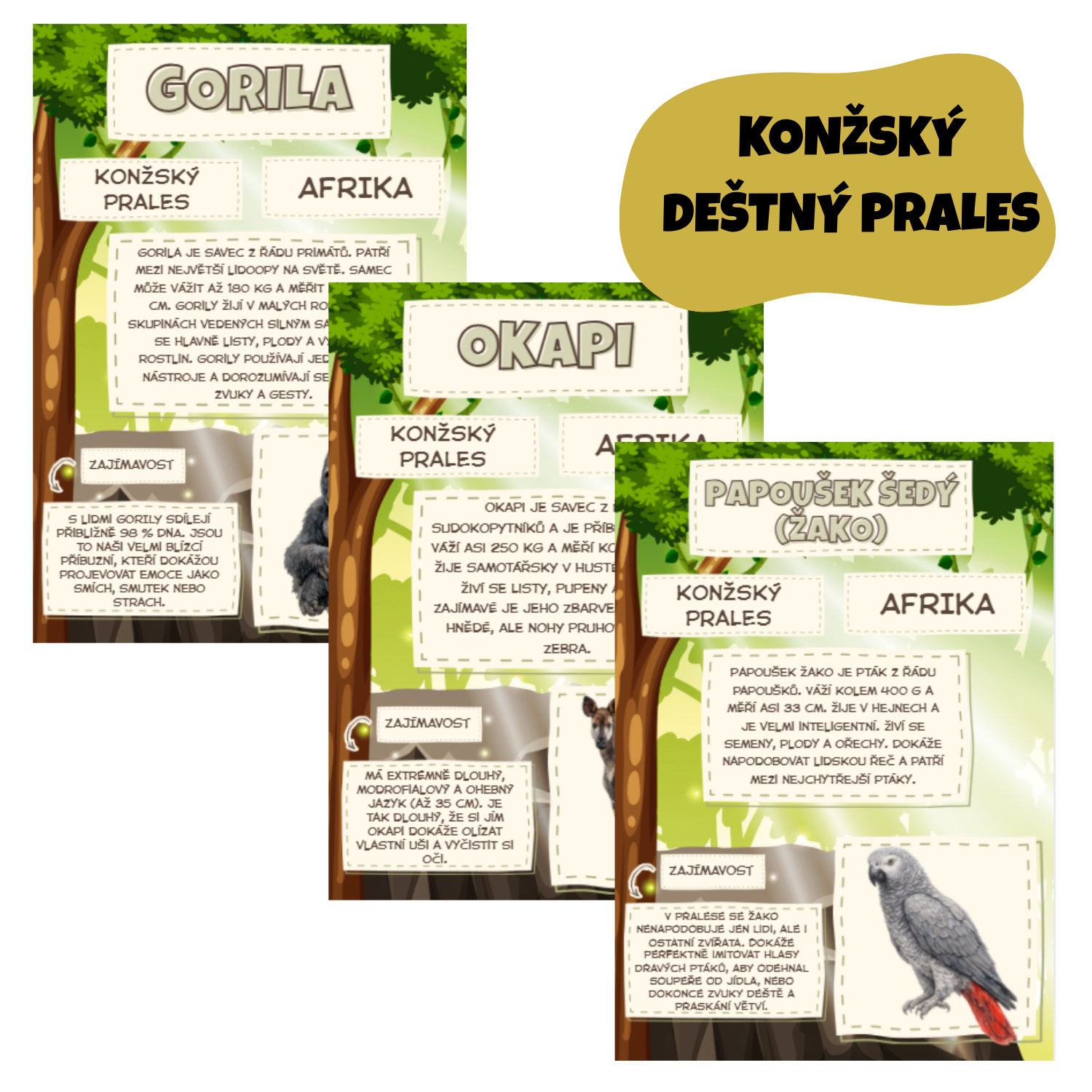- plakáty s živočichy KONŽSKÉHO deštného lesa (str. 20 - 28)