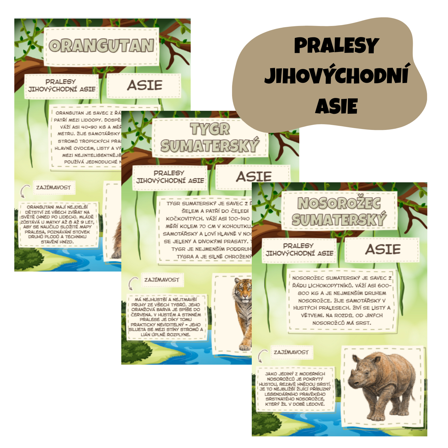 - plakáty s živočichy pralesů JIHOVÝCHODNÍ Asie (str. 29 -42)