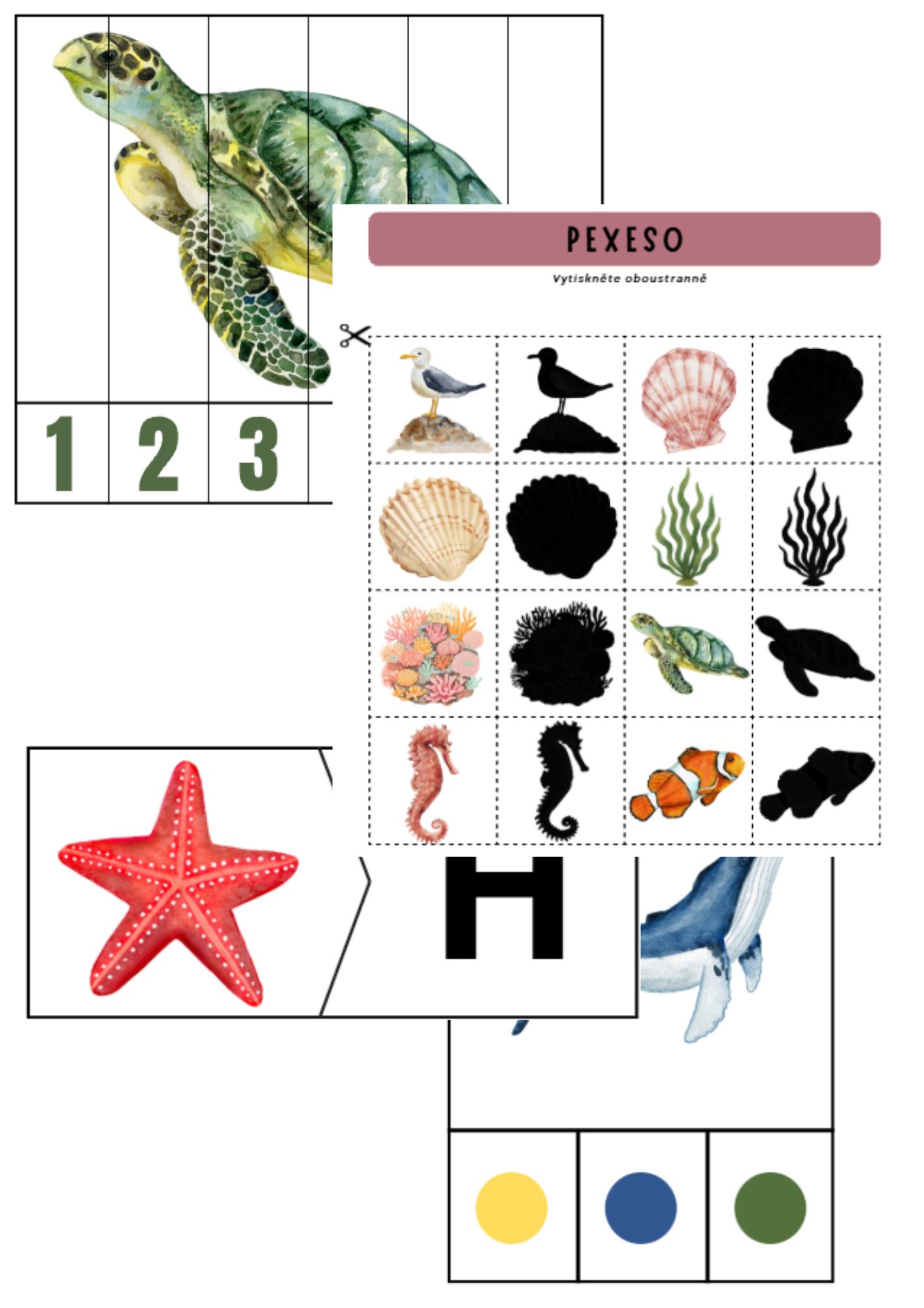 🔹 obrázek moře + obrázky k vystřihnutí,