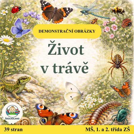Tento vzdělávací soubor obsahuje demonstrační obrázky „ŽIVOT V TRÁVĚ“ (hmyz a drobní bezobratlí), které jsou určené pro práci s dětmi v mateřské škole. Obrázky slouží jako názorná pomůcka při seznamování dětí s jarem, probouzející se přírodou a světem drobných živočichů v trávě.
