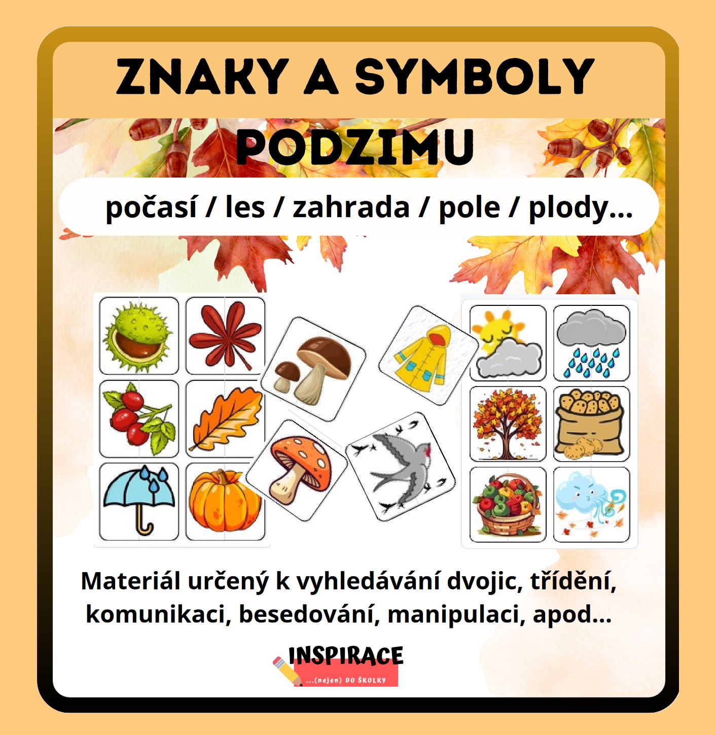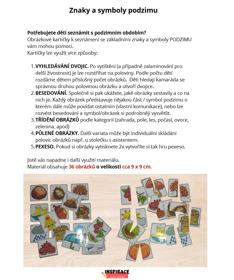 Obrázkové kartičky k seznámení se základními znaky a symboly PODZIMU vám mohou pomoci.