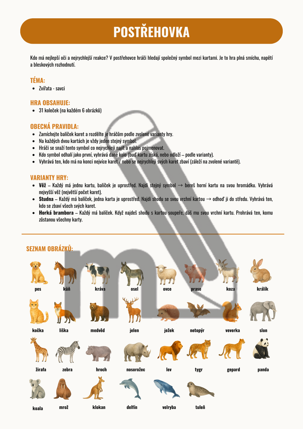 Kdo má nejlepší oči a nejrychlejší reakce? V postřehovce hráči hledají společný symbol mezi kartami. Je to hra plná smíchu, napětí a bleskových rozhodnutí.