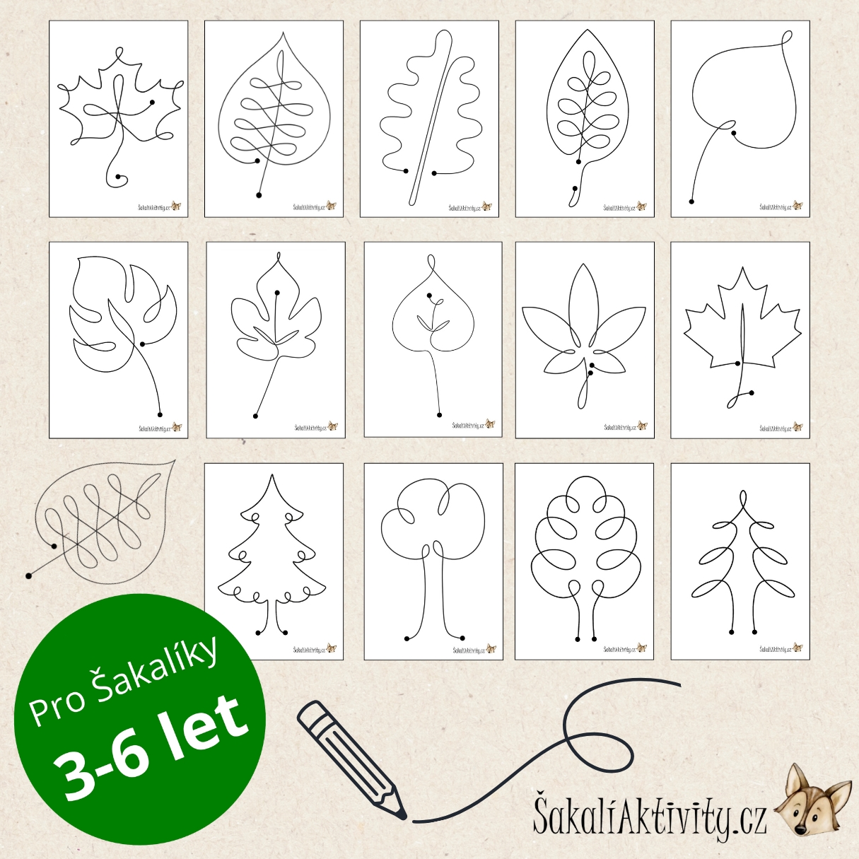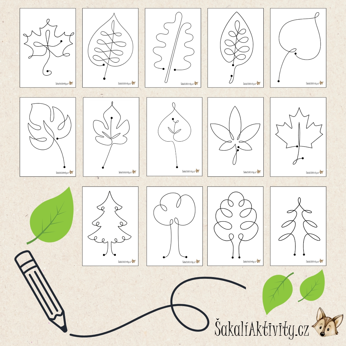 - 14 originálních grafomotorických listů s motivy stromů, listů, šišek a větviček