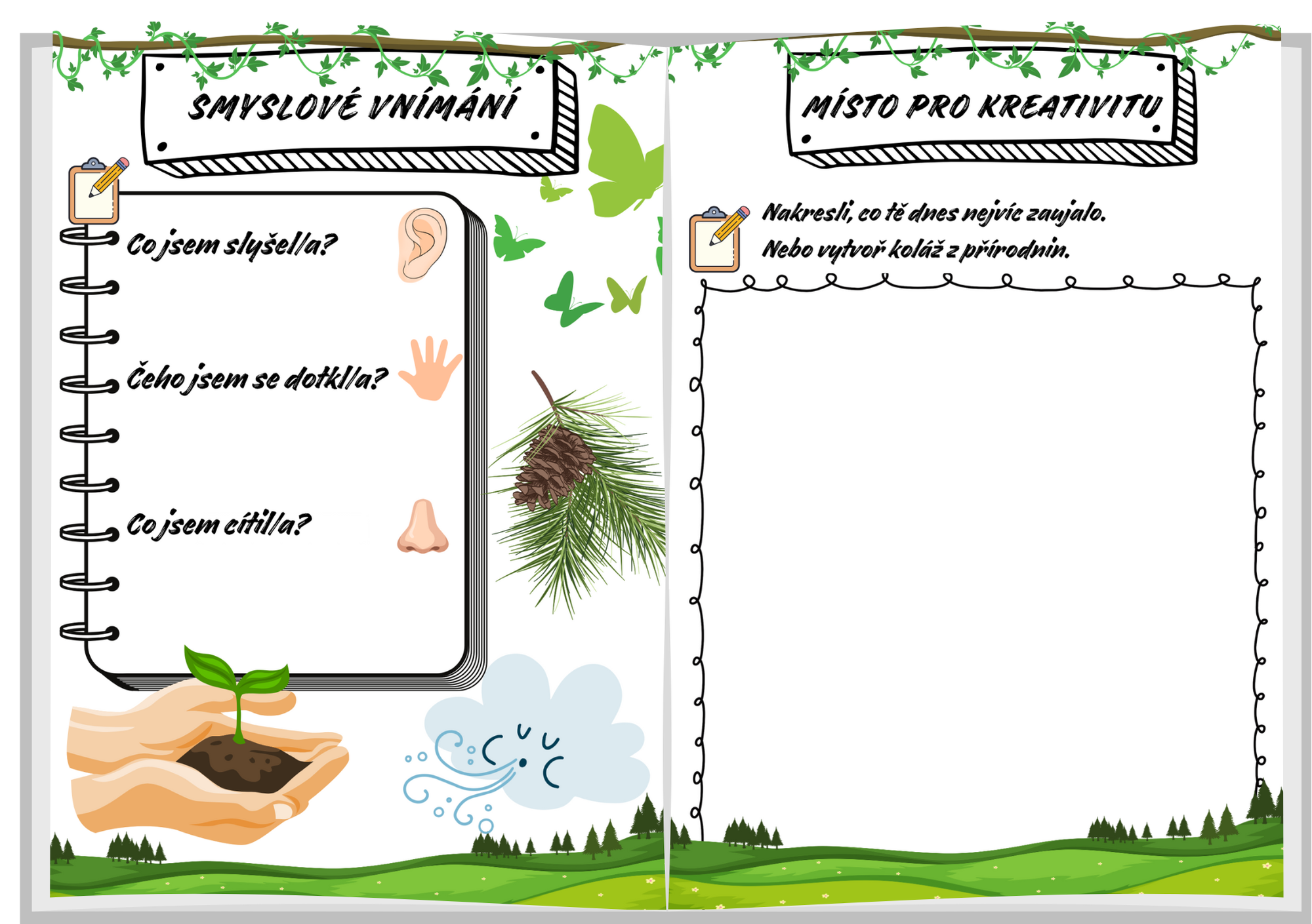 Pětistránkový blok = jeden den – děti pozorují přírodu, kreslí, zapisují a hledají věci kolem sebe.
