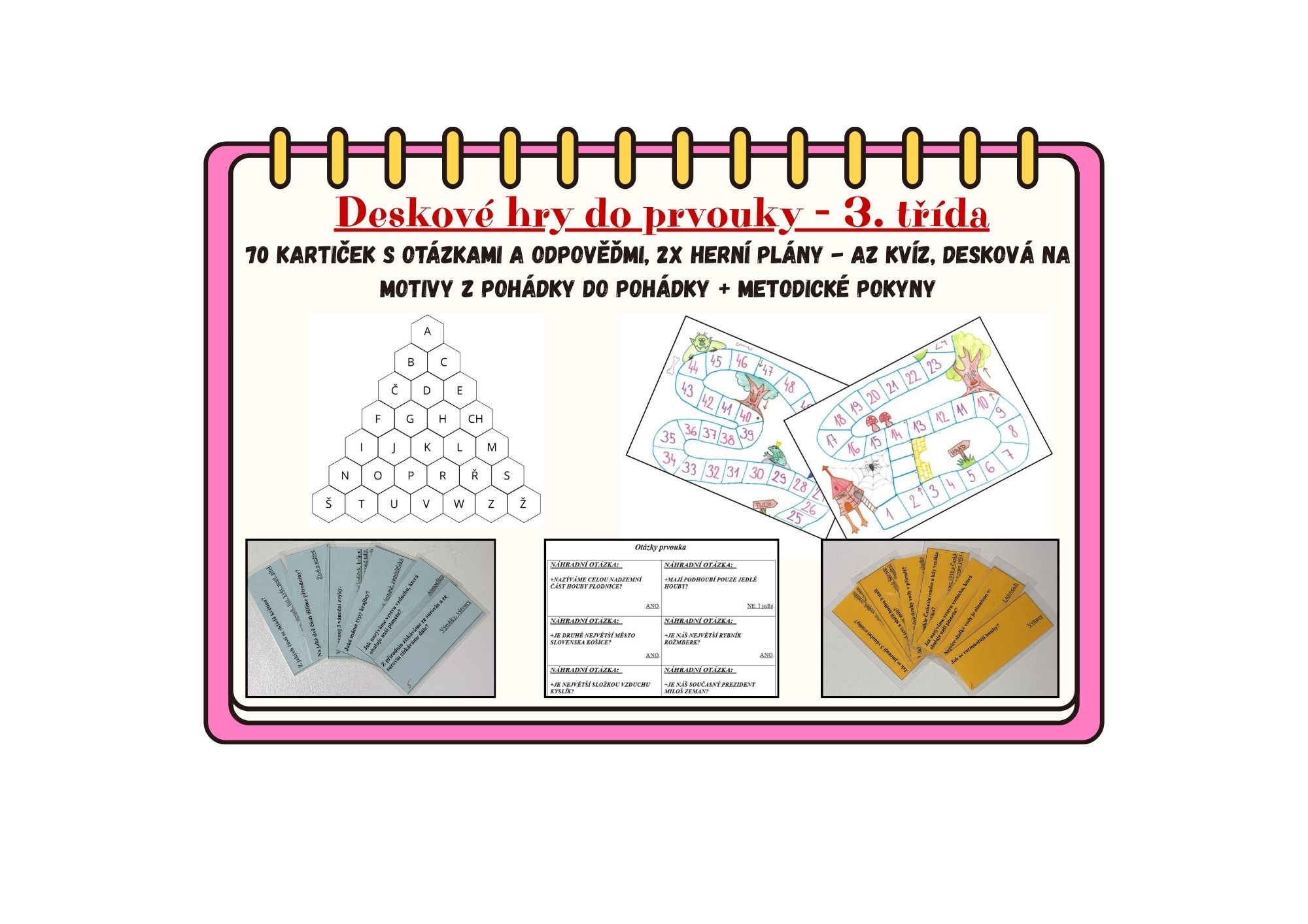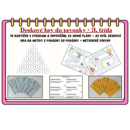Aktivizační hry do výuky prvouky. Materiál obsahuje 2 různá herní pole a 70 kartiček s otázkami a odpověďmi z prvouky pro 3. třídu.
