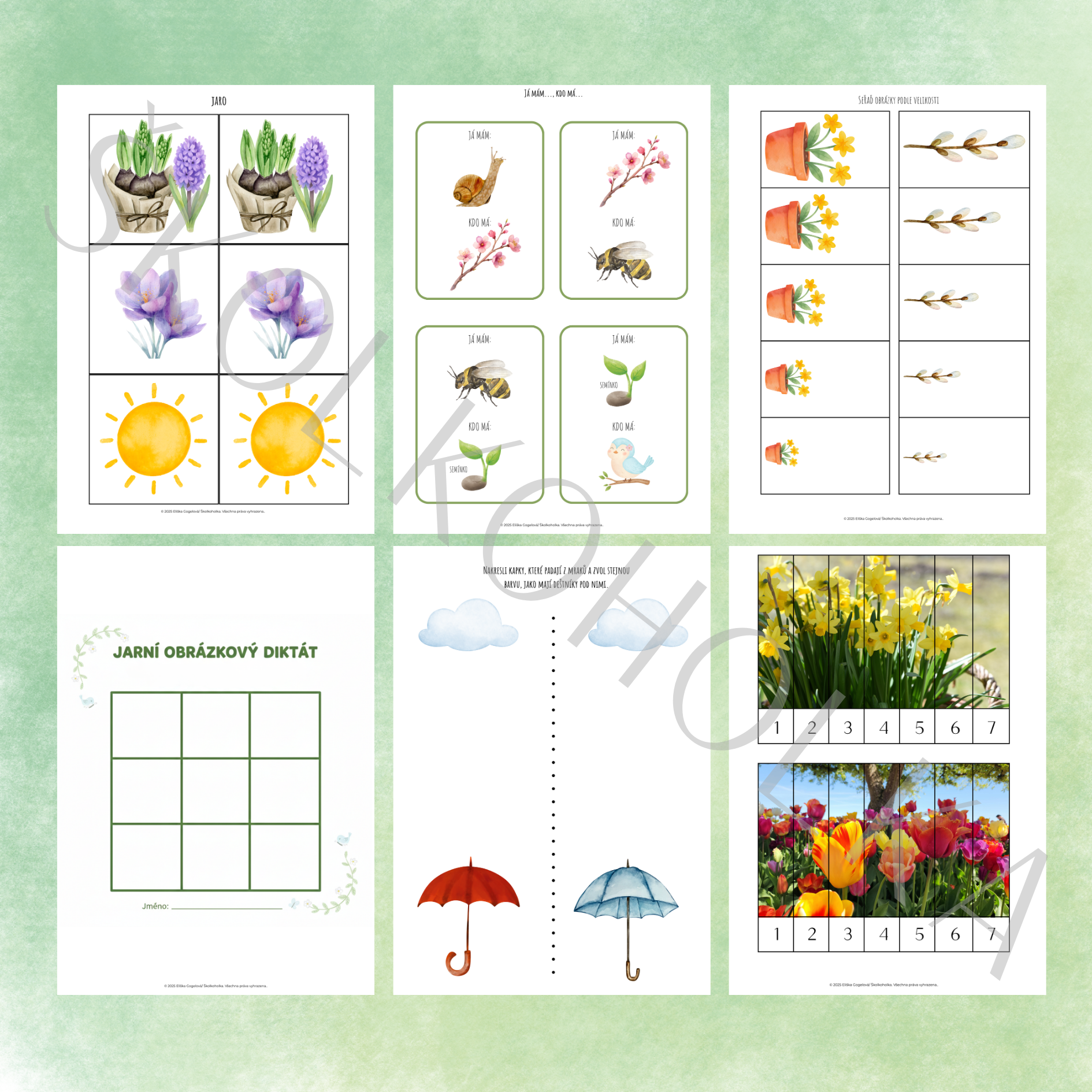 - Pracovní listy: Tematické úkoly zaměřené na logické myšlení a všeobecný přehled o jaru. 📑✍️