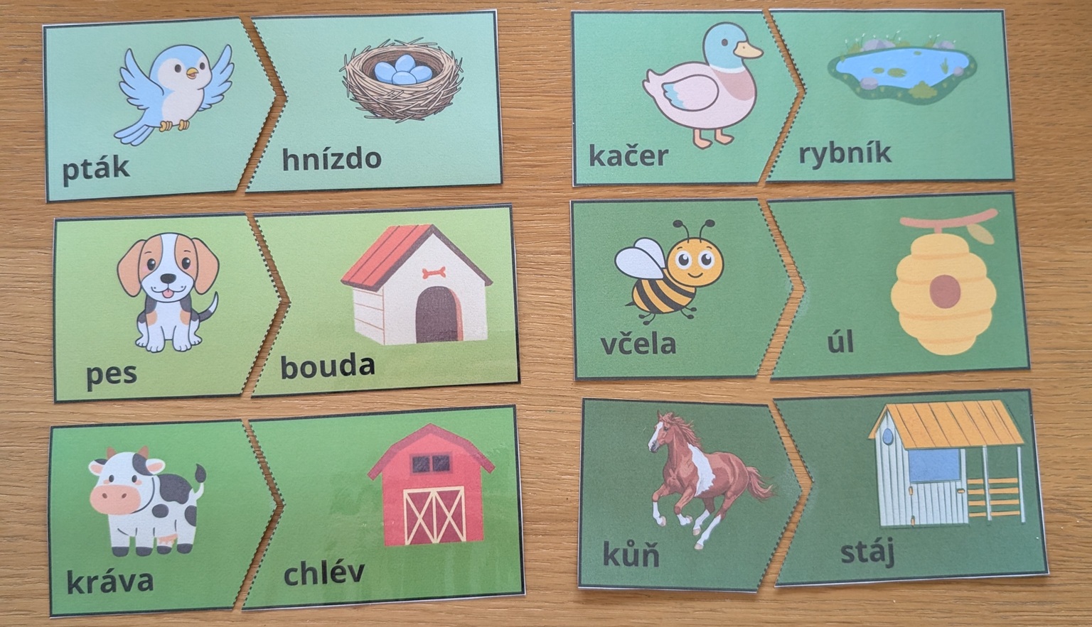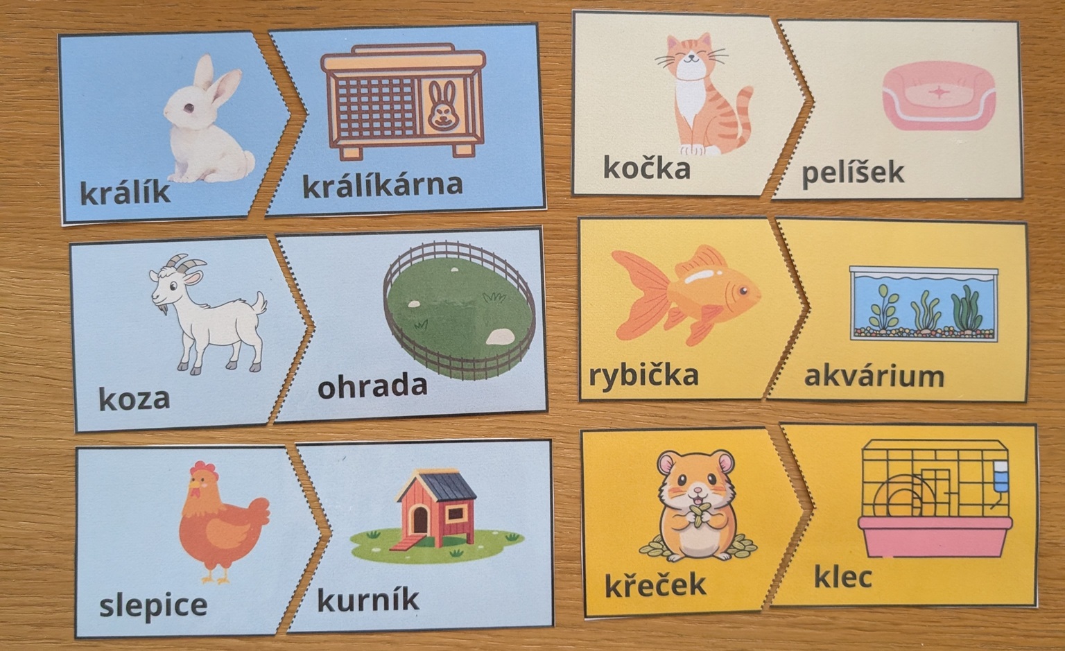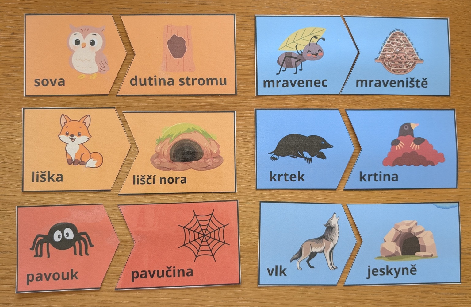 3) Vystřihneme a podle přerušované čáry rozstřihneme na dvě části. Poté můžeme přiřazovat.