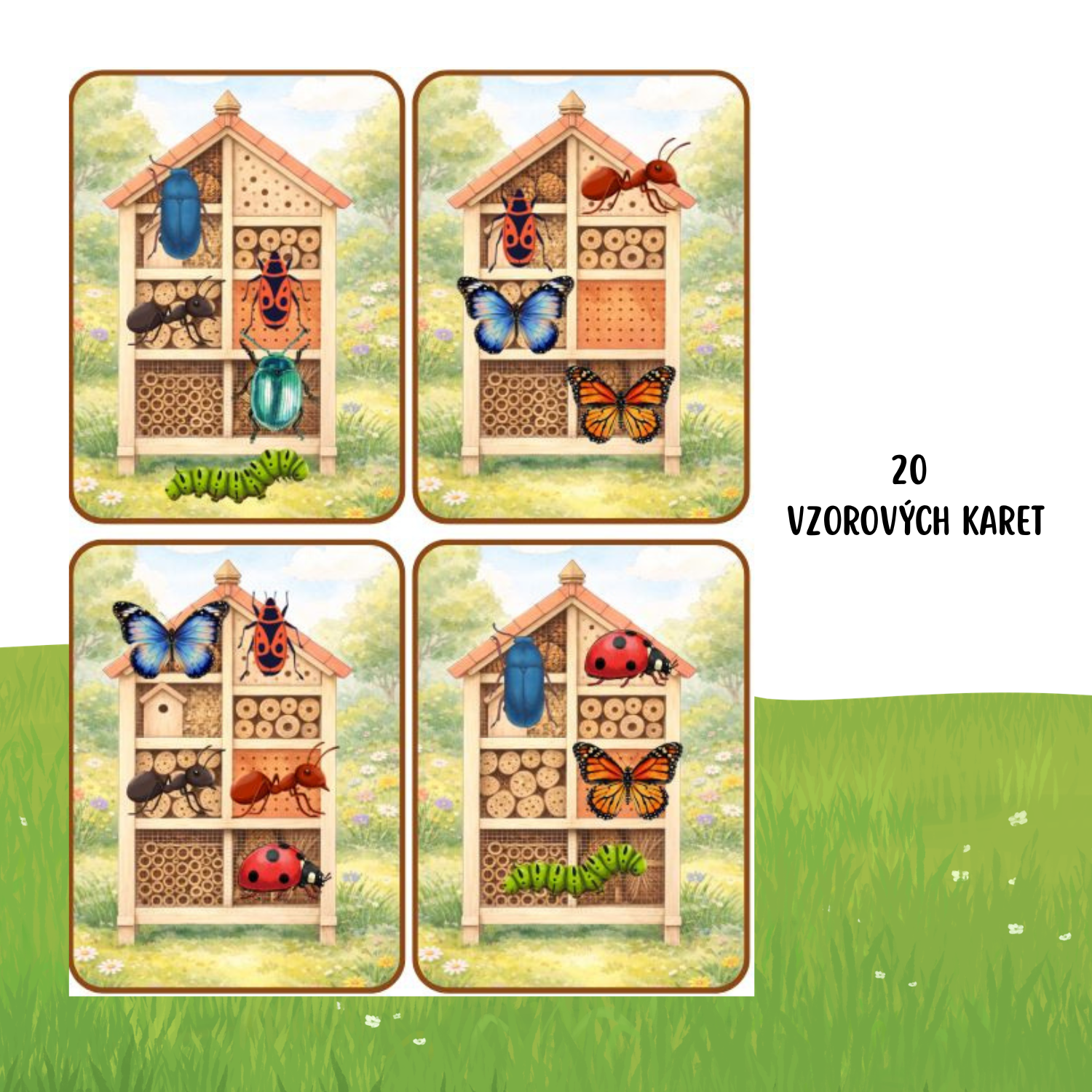 - 20 vzorových karet s různým uspořádáním hmyzu