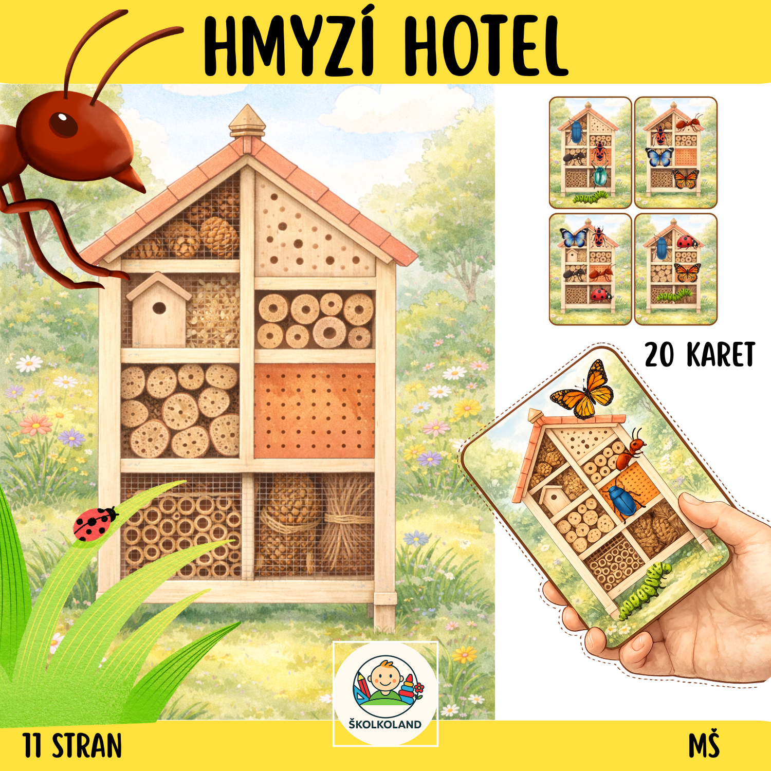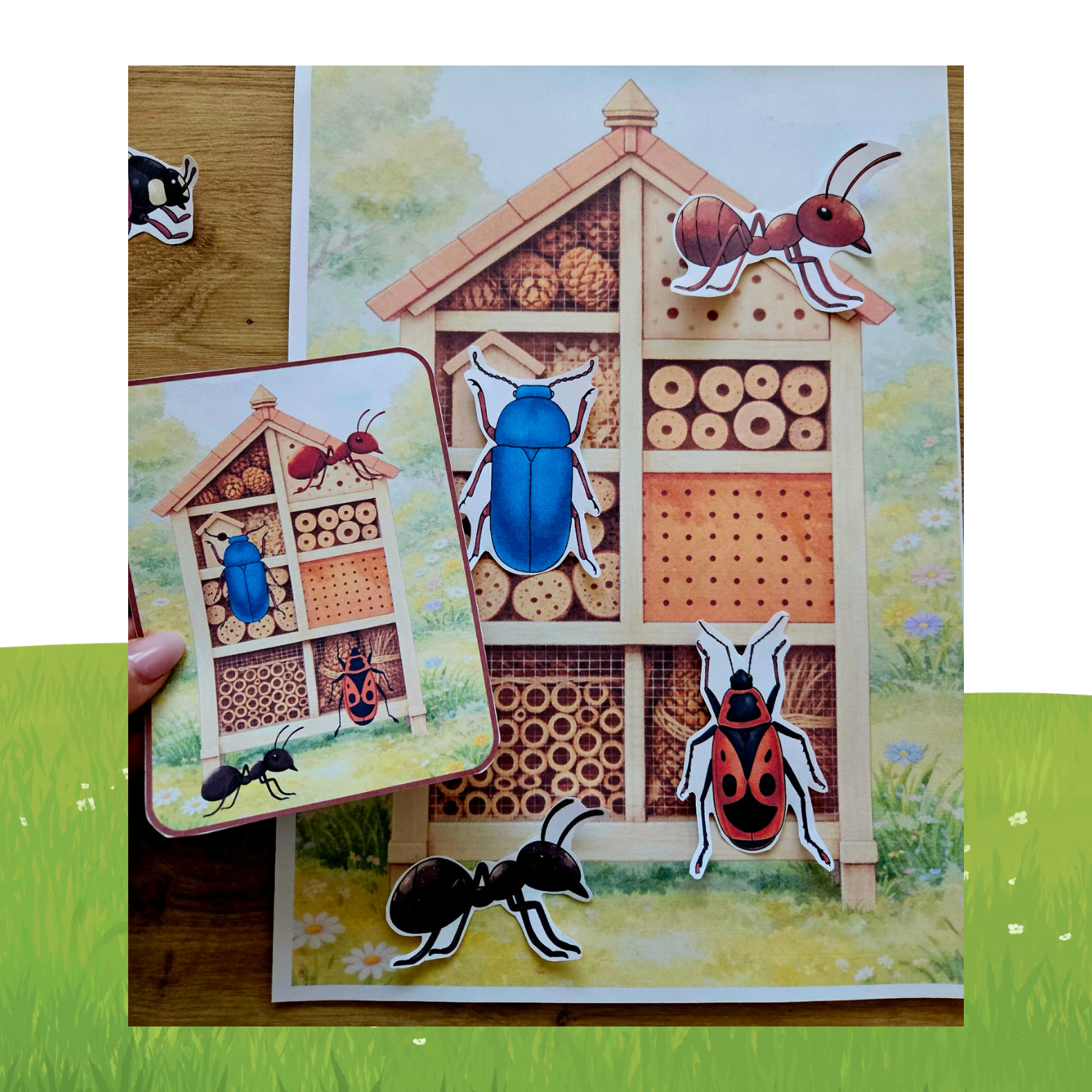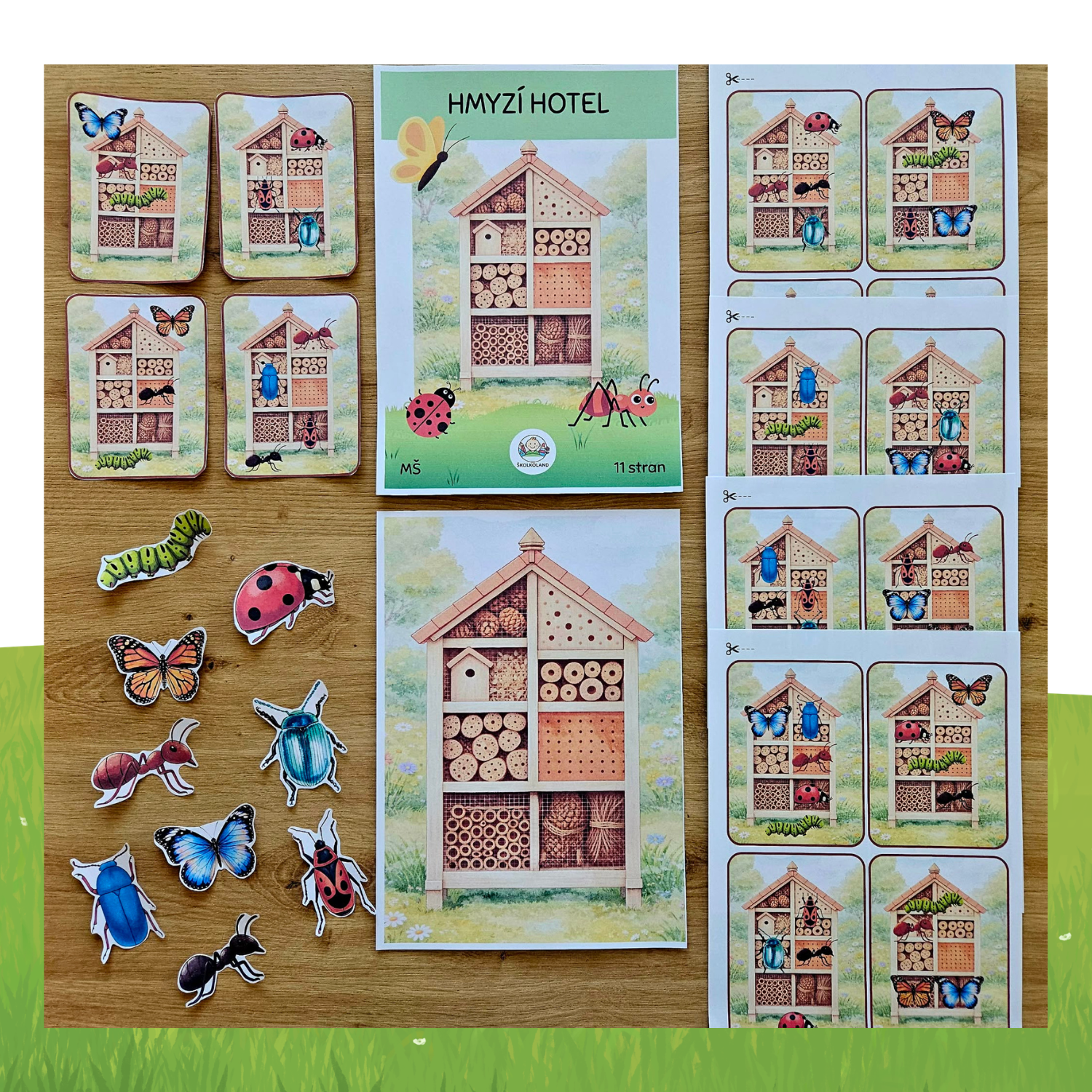 Děti podle předlohy skládají nebo doplňují hmyz do jednotlivých částí hmyzího hotelu. Učí se tak vnímat detaily, orientovat se v prostoru, porovnávat a soustředit se na zadání.